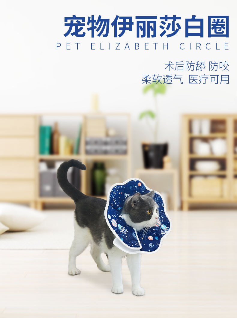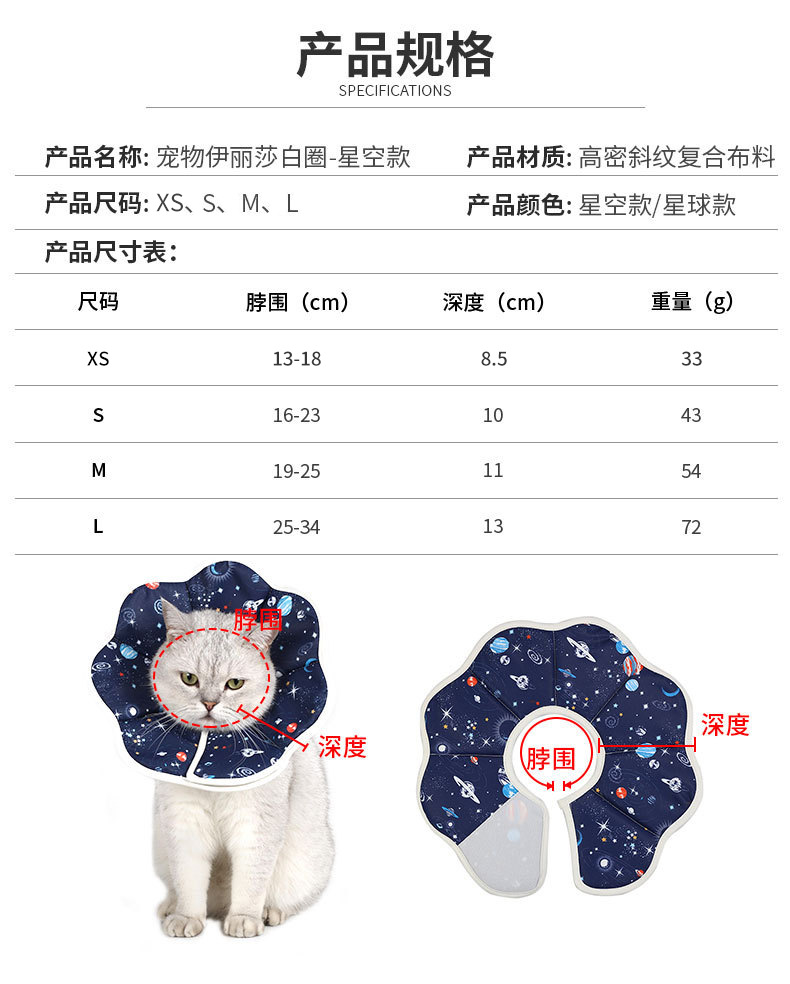 新品猫咪宠物伊丽莎白圈防水防舔绝育宠物头套太空星球可折叠脖圈