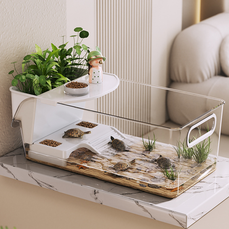 小型乌龟饲养缸专用水族箱家用螃蟹缸办公室桌面龟缸生态造景晒爬
