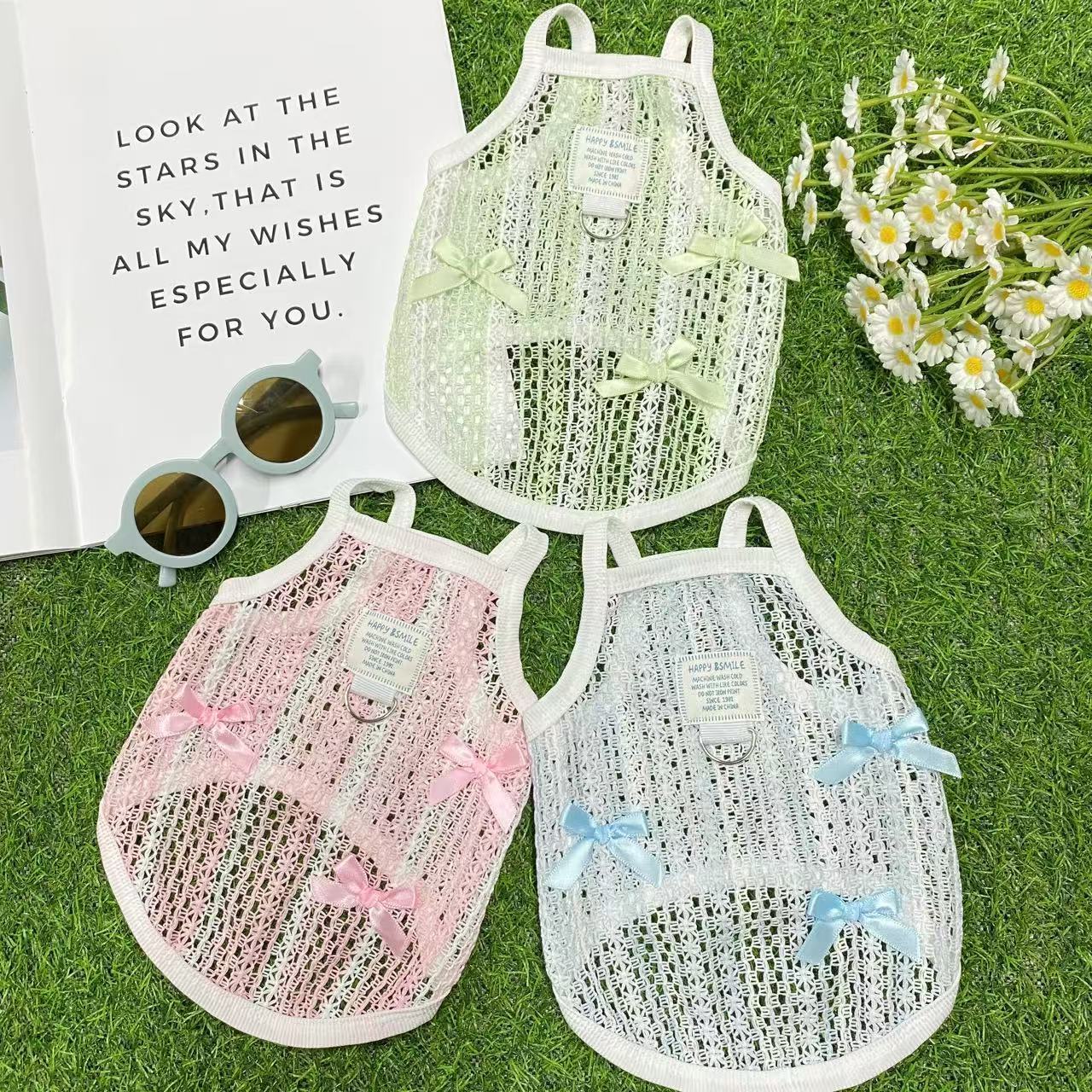 夏季新款狗狗猫咪镂空透气衣服防掉毛背心泰迪柯基比熊金渐层田园