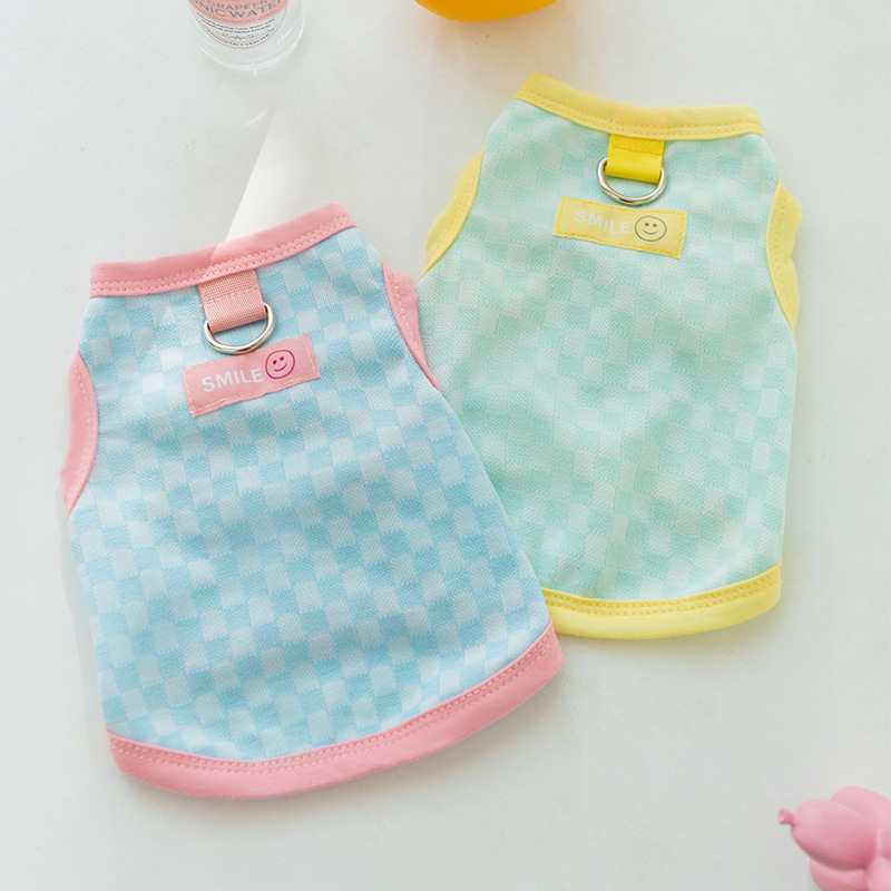休闲棋盘格背心小型犬带牵引衣服狗狗春夏装小狗夏季薄款宠物服装