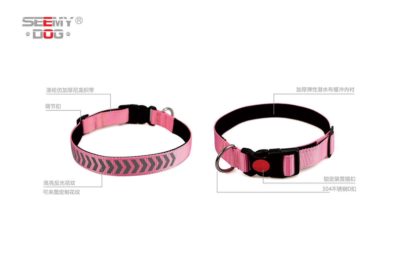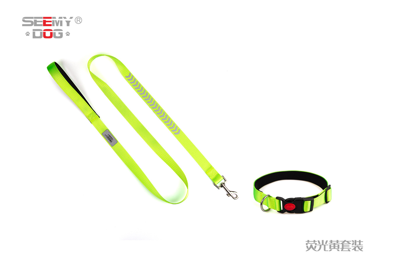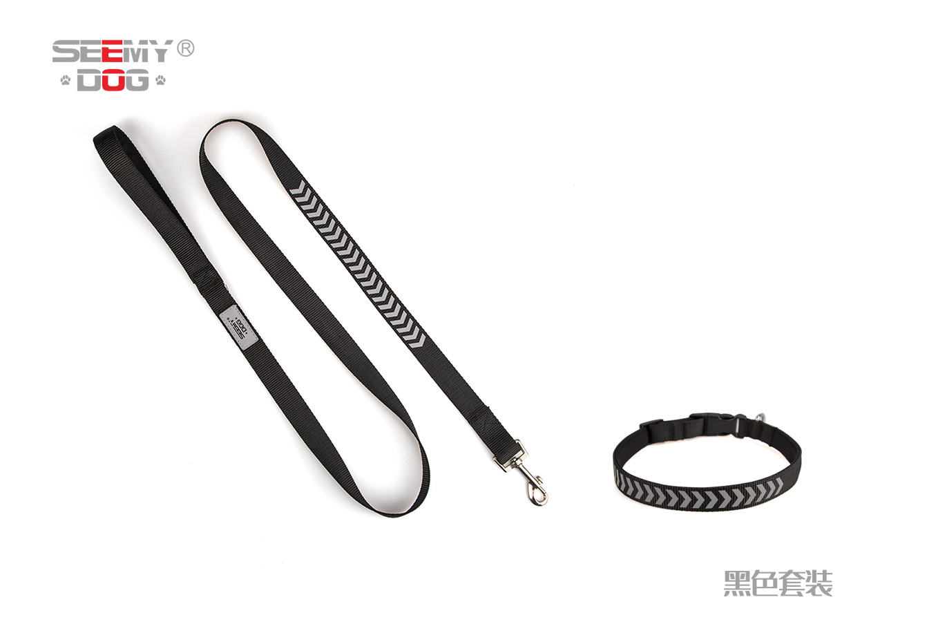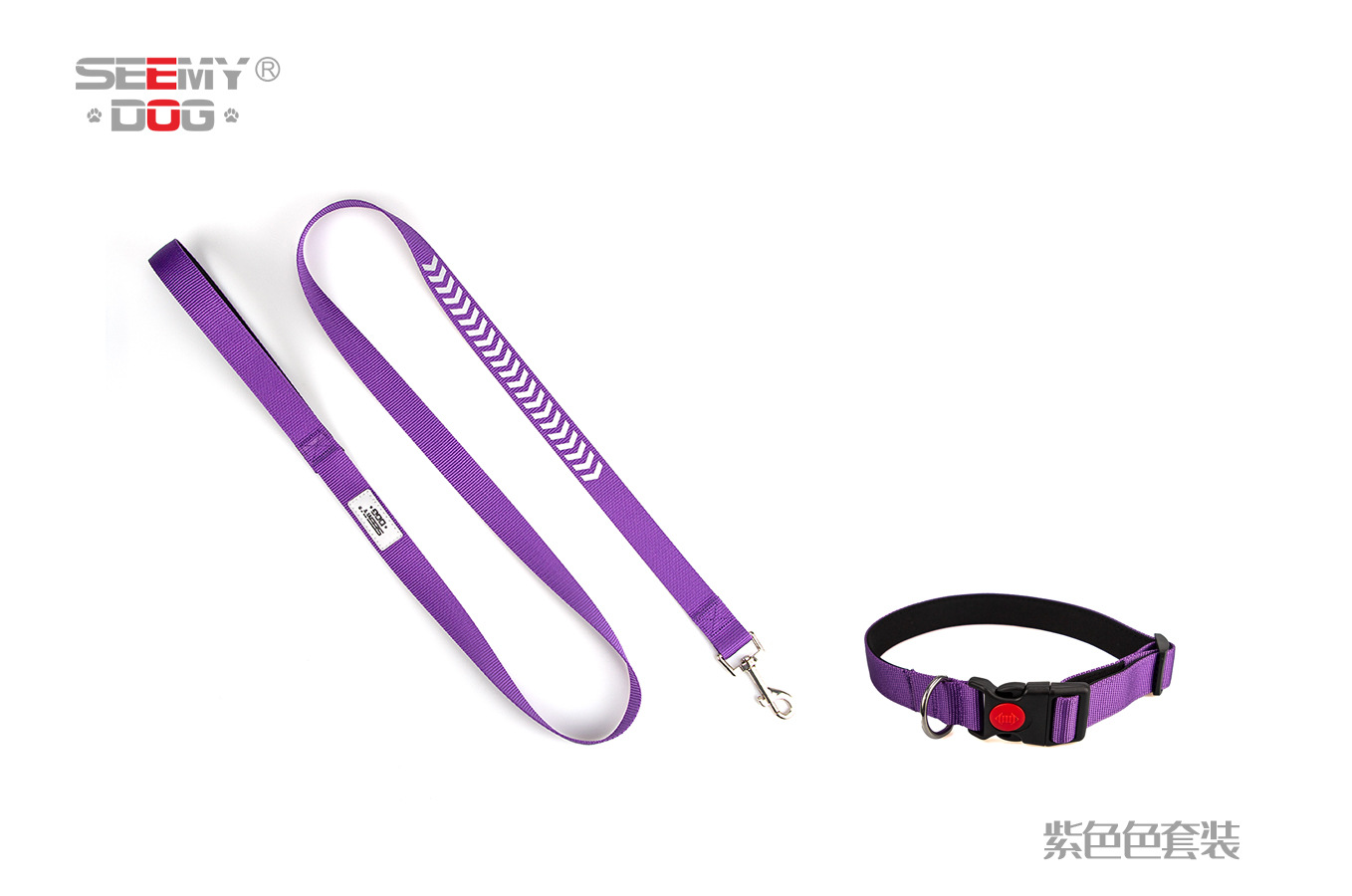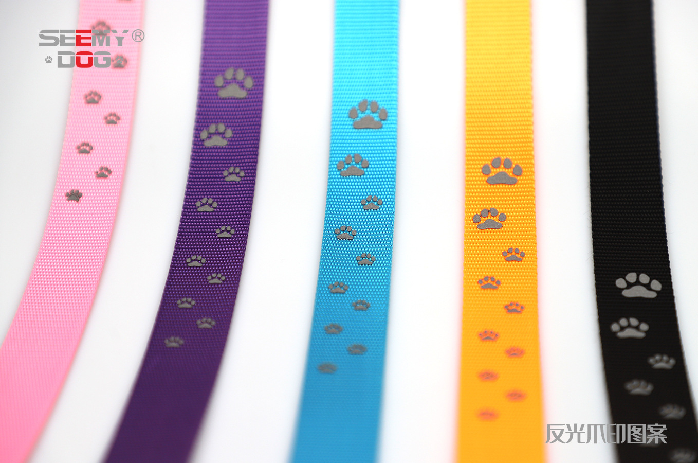 新款柔性多色反光图案牵引绳微弹狗狗宠物项圈安全扣