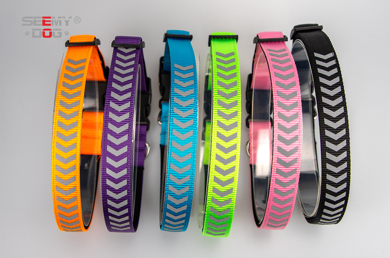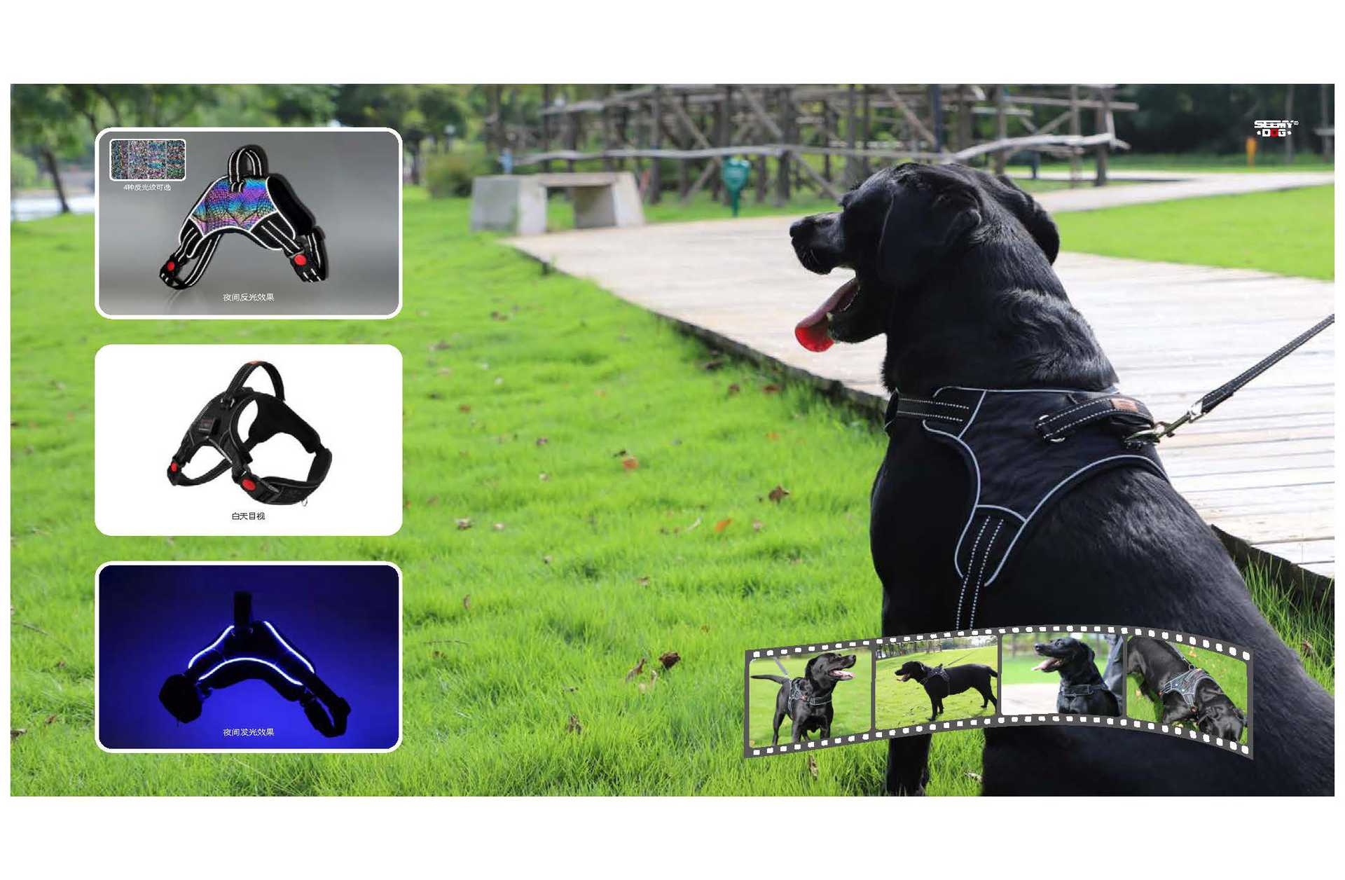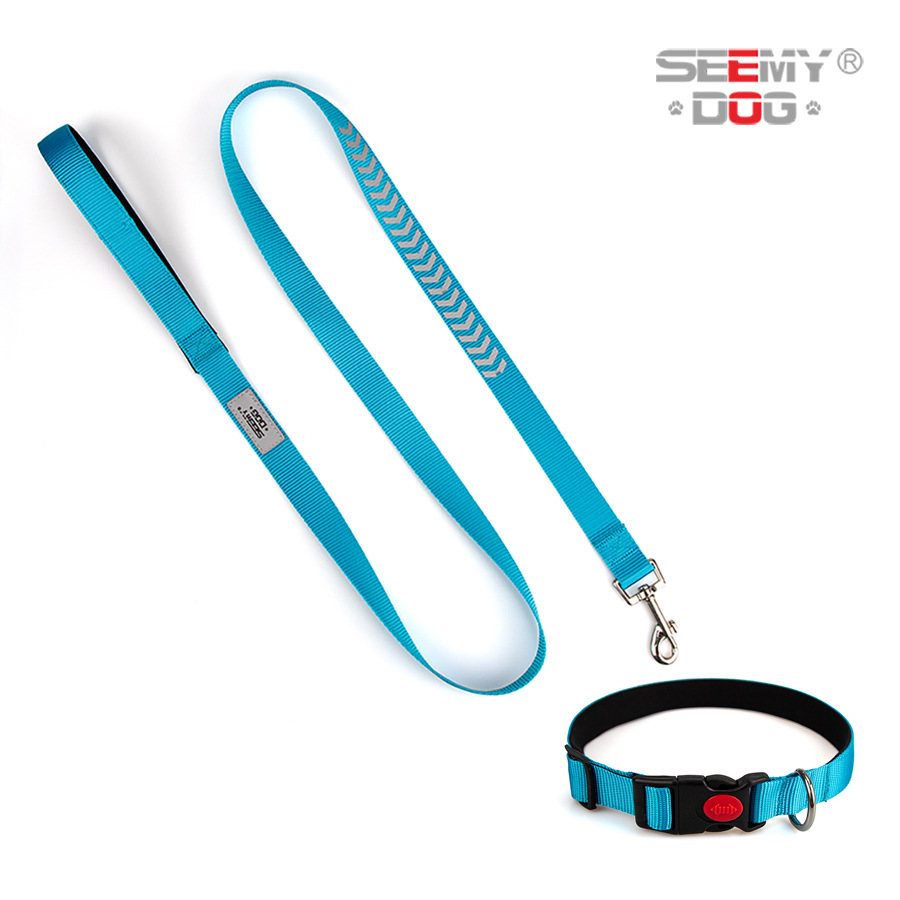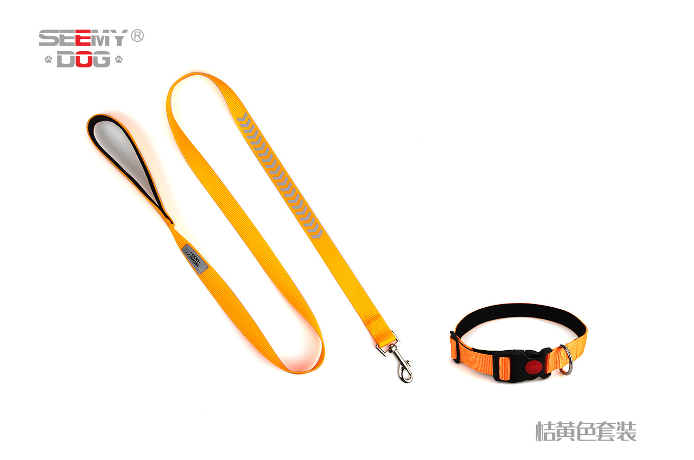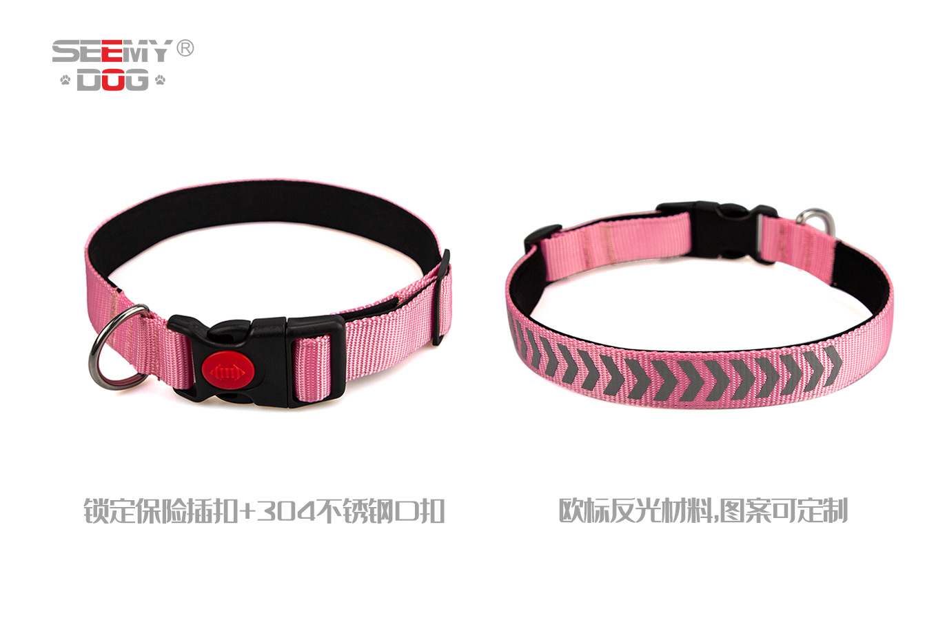 新款柔性多色反光图案牵引绳微弹狗狗宠物项圈安全扣