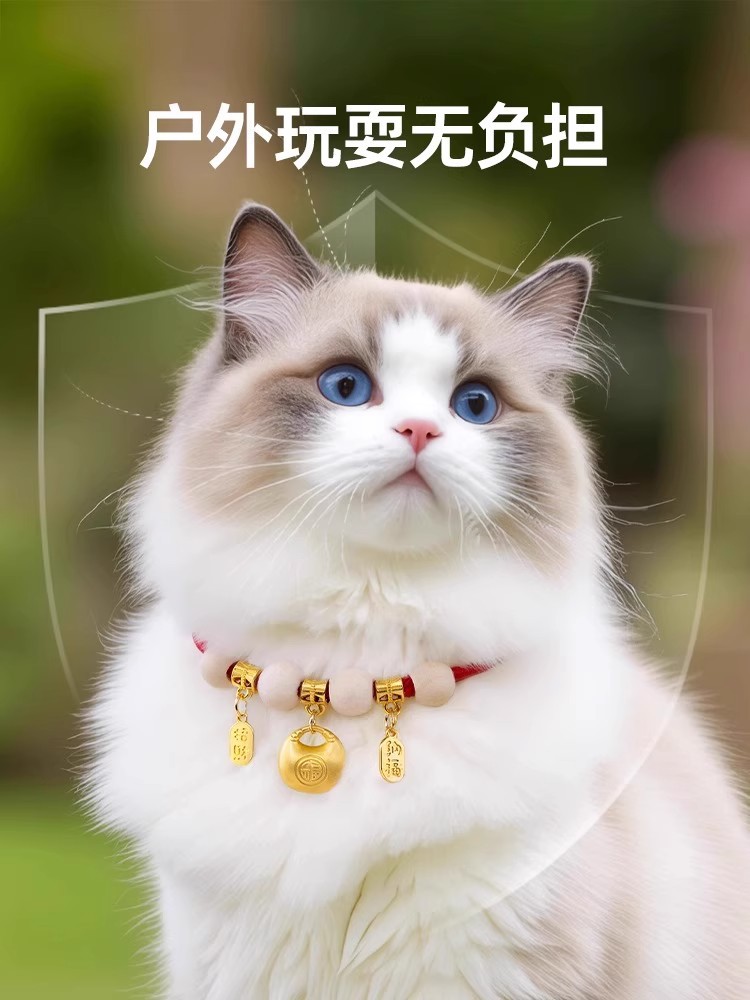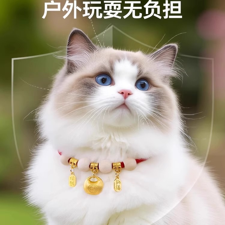 猫咪项圈天然香樟木球驱驰宠物脖圈无声铃铛小猫项链幼猫可爱配饰