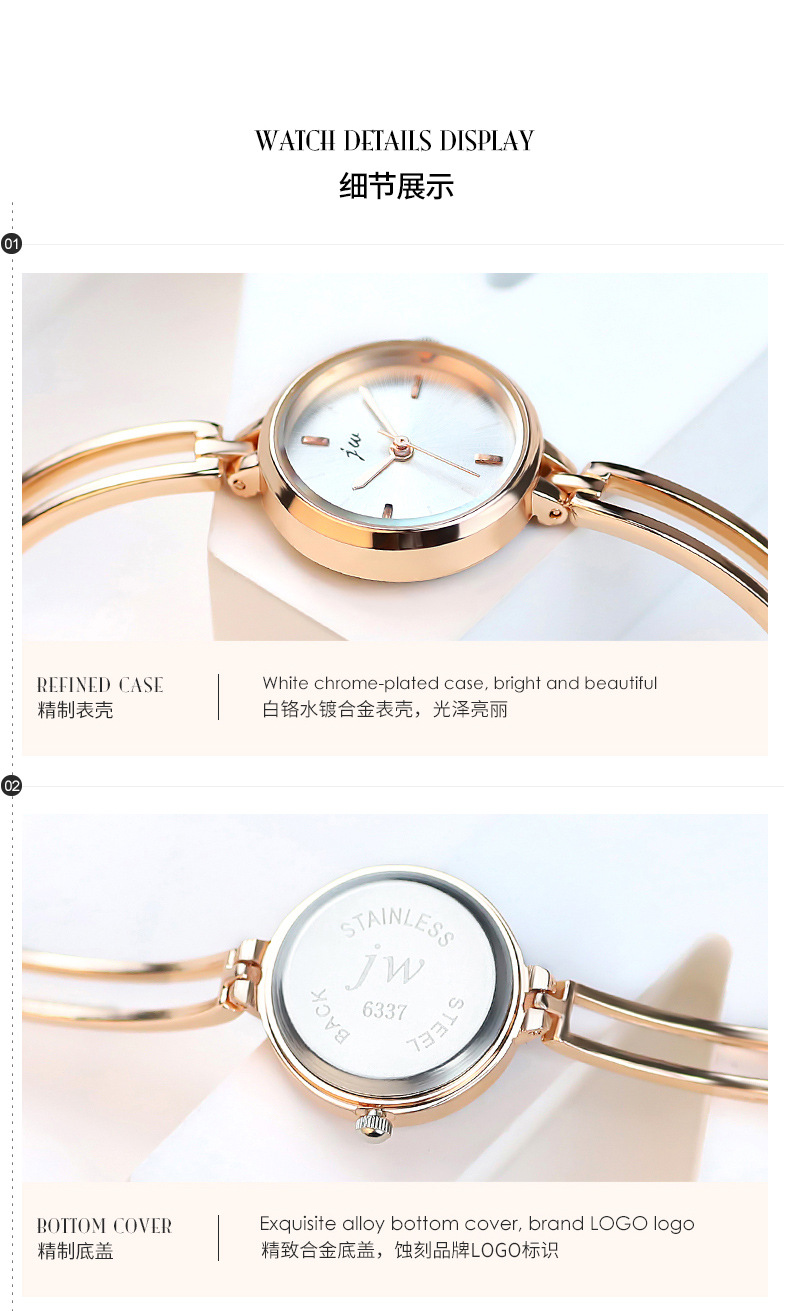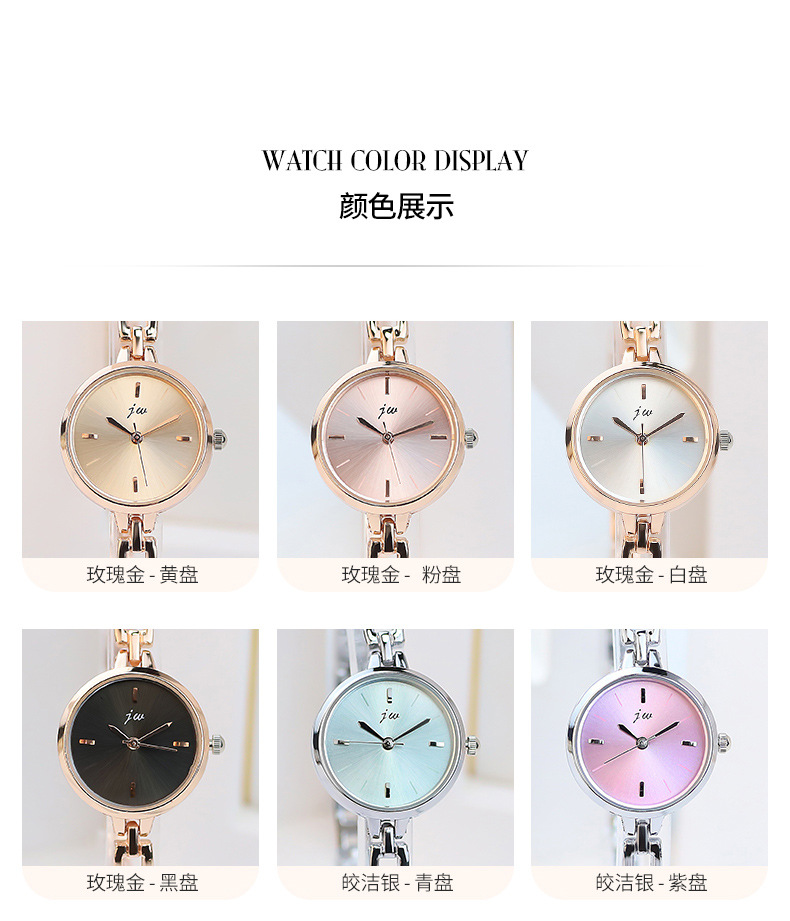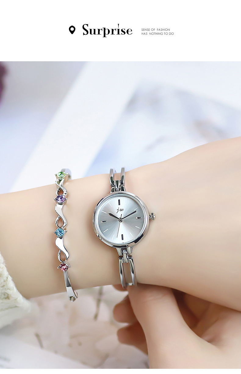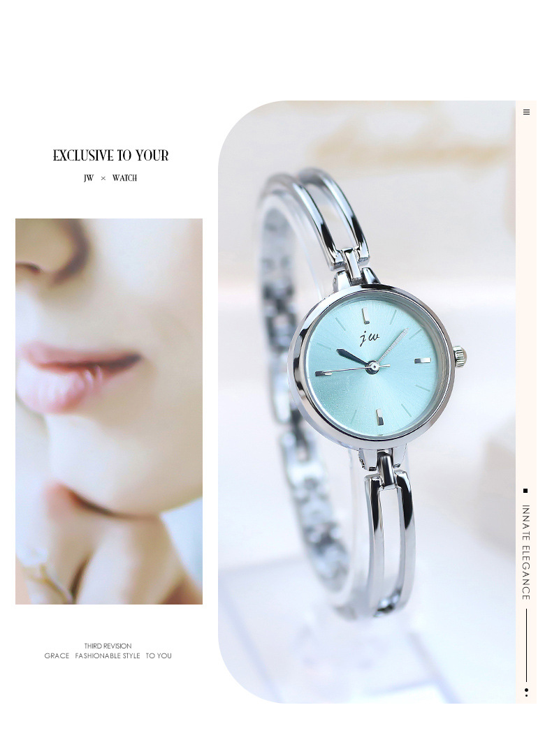 JW正品简约圆形手镯手表学生表爆款女表时尚石英手链手表