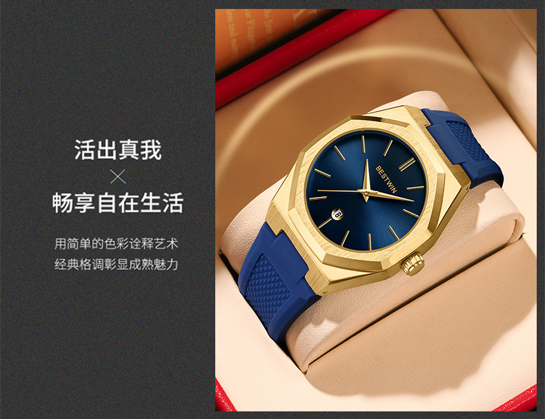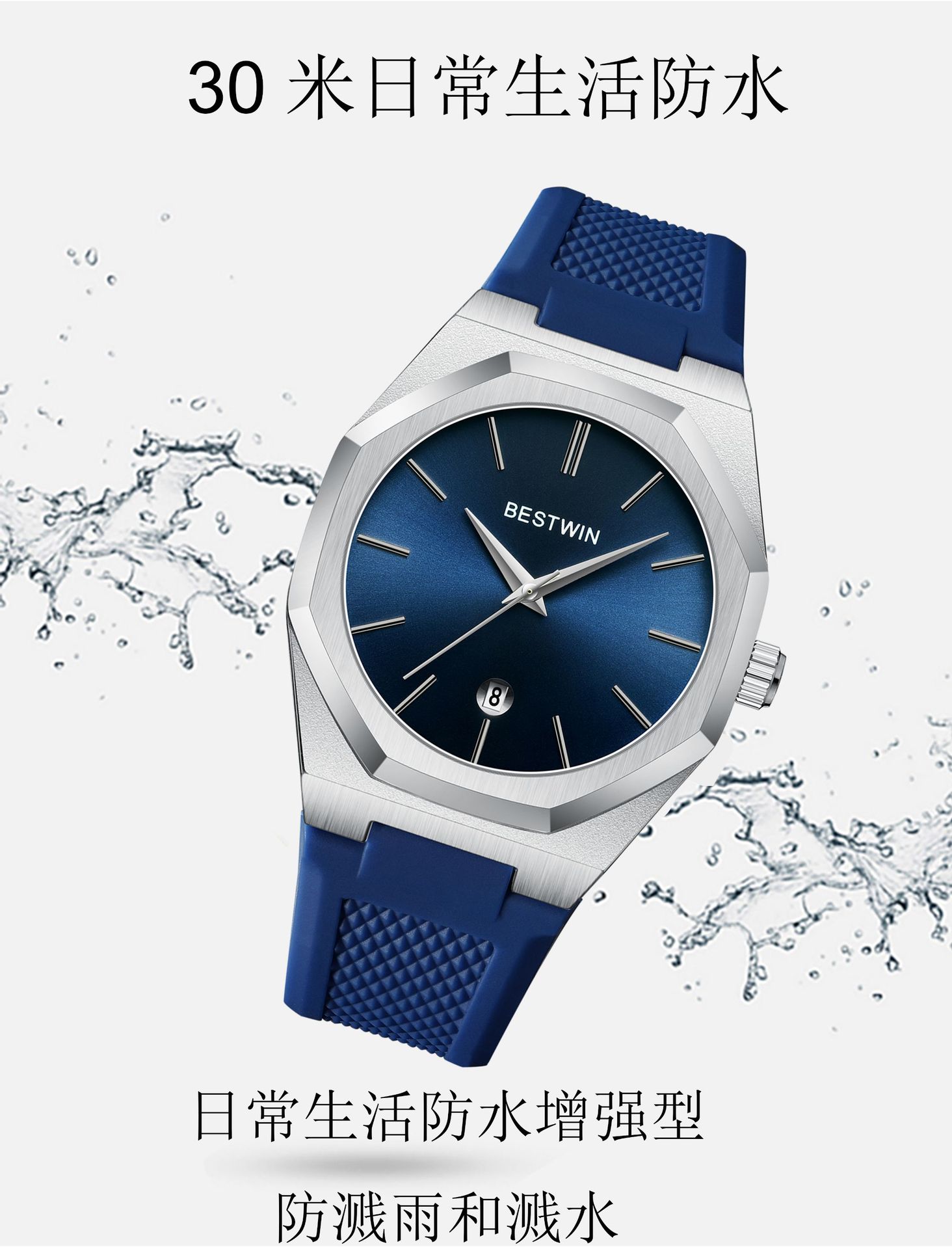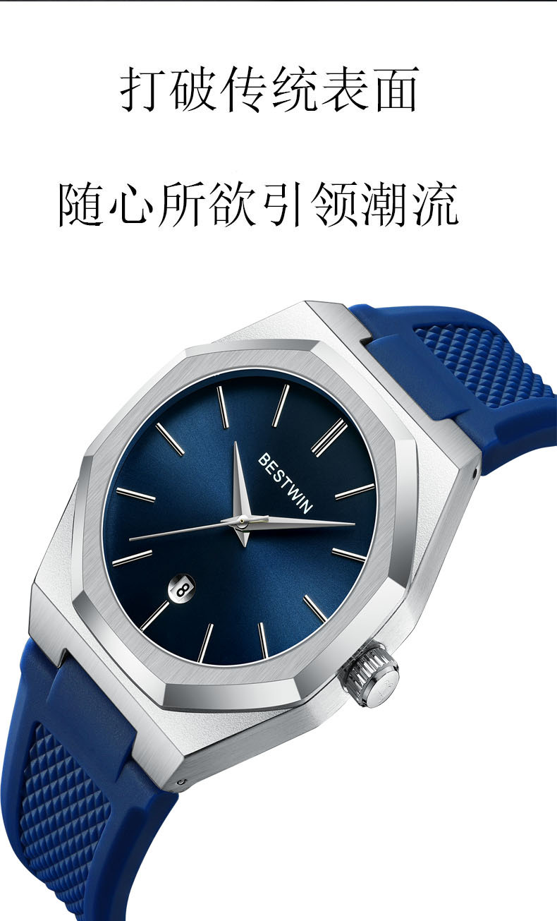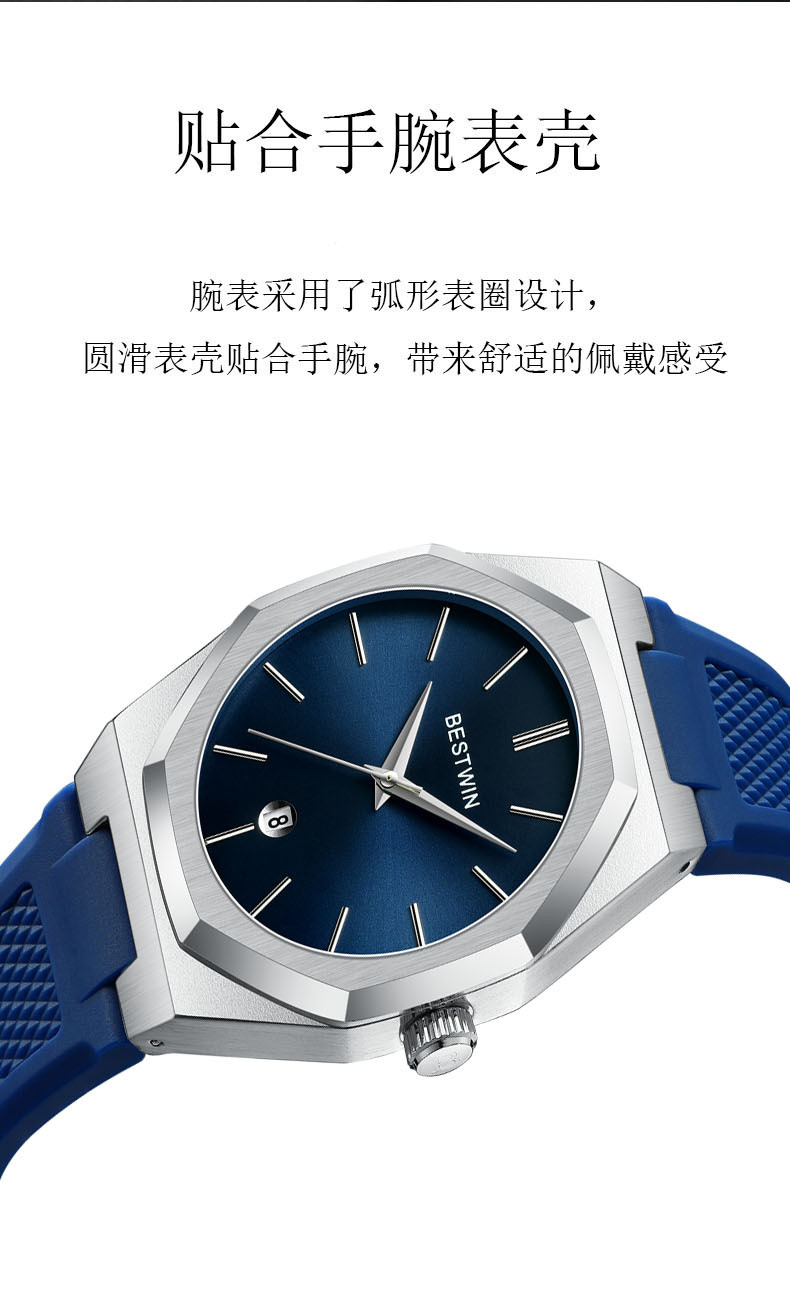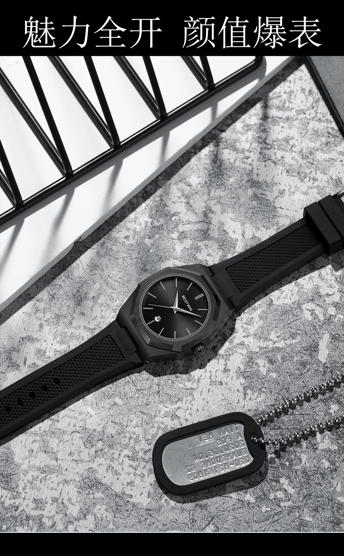 硅胶表带石英表男士手表男博士通BESTWIN日历时尚男表