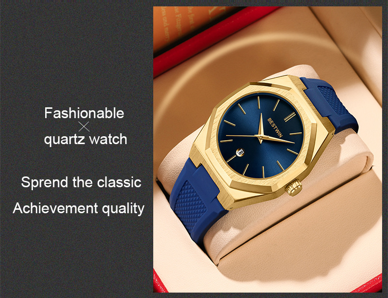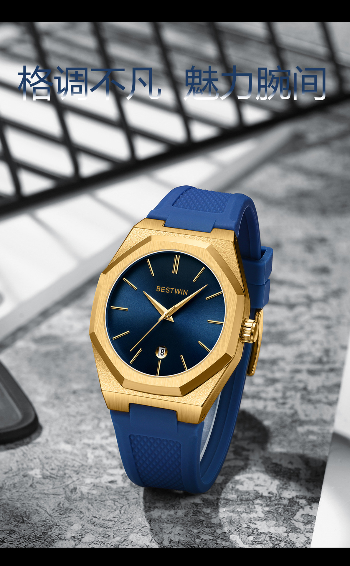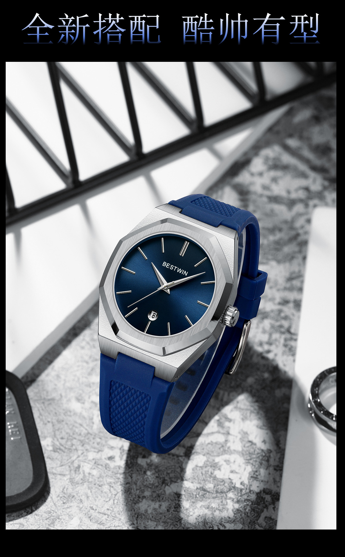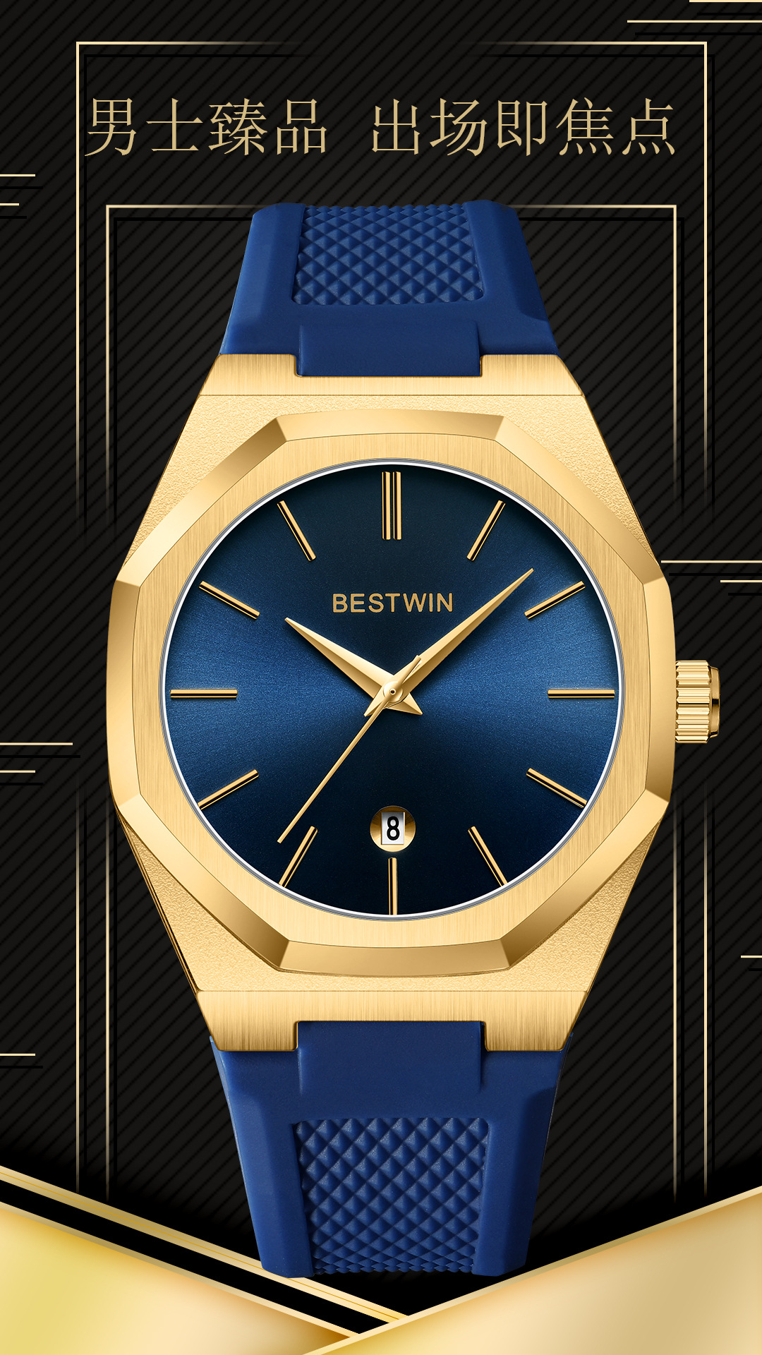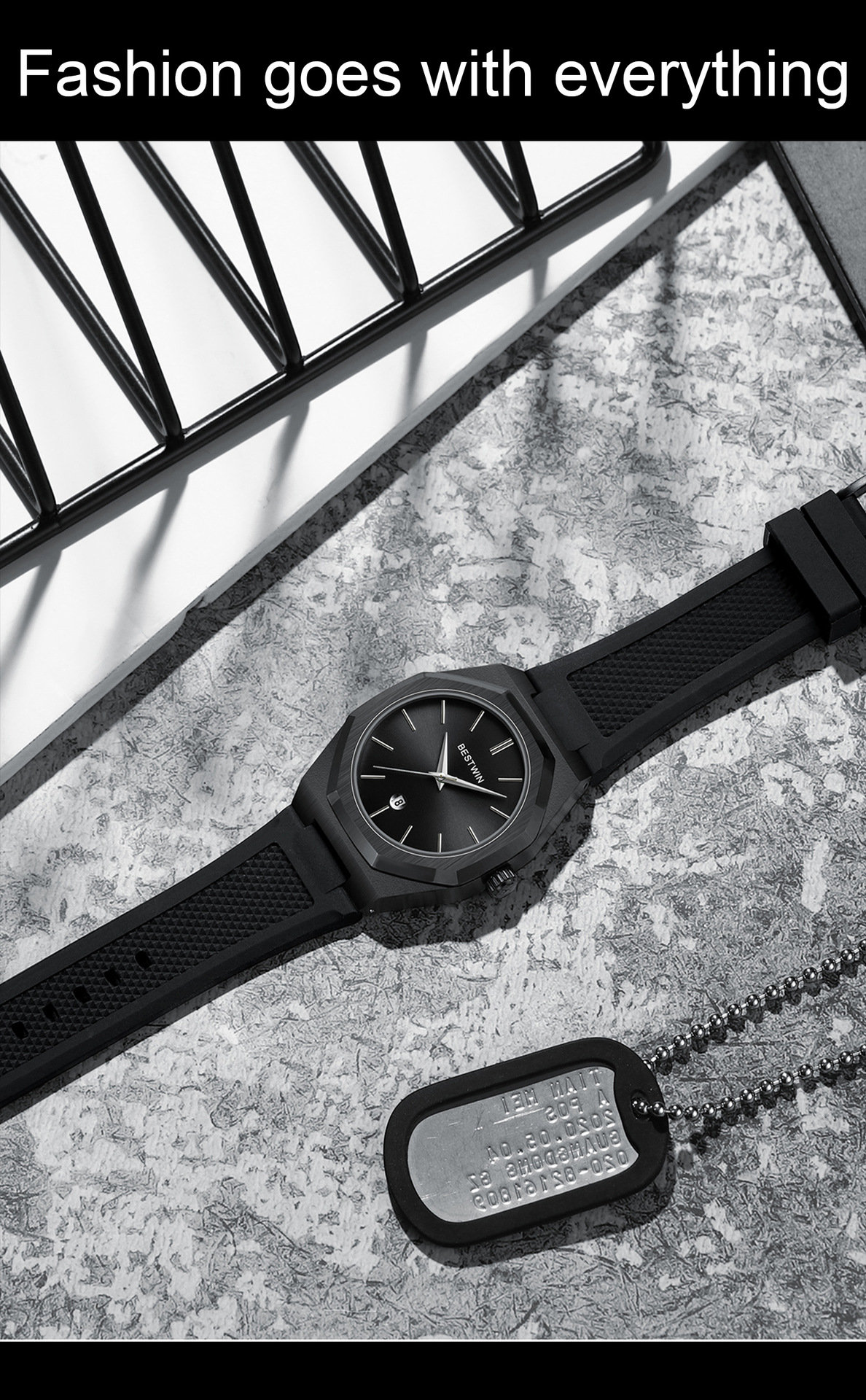 硅胶表带石英表男士手表男博士通BESTWIN日历时尚男表