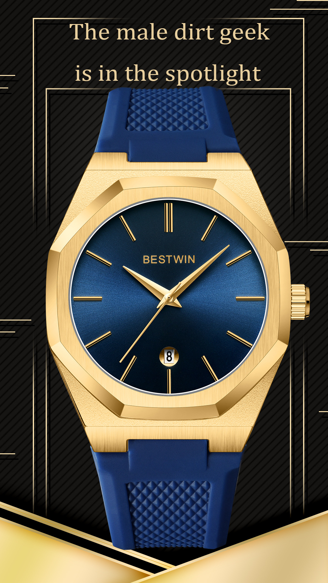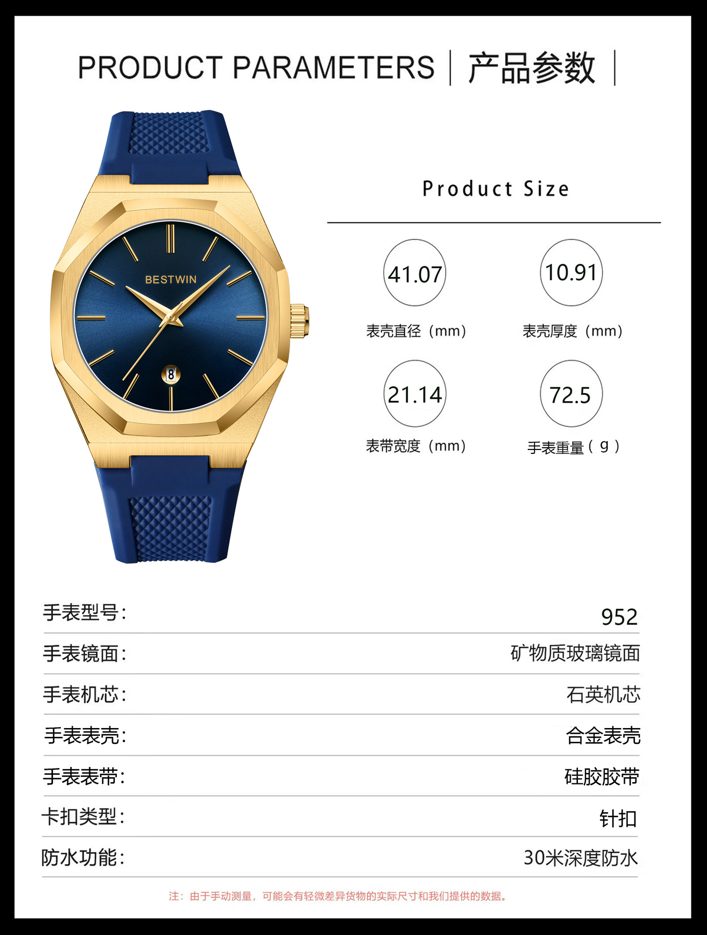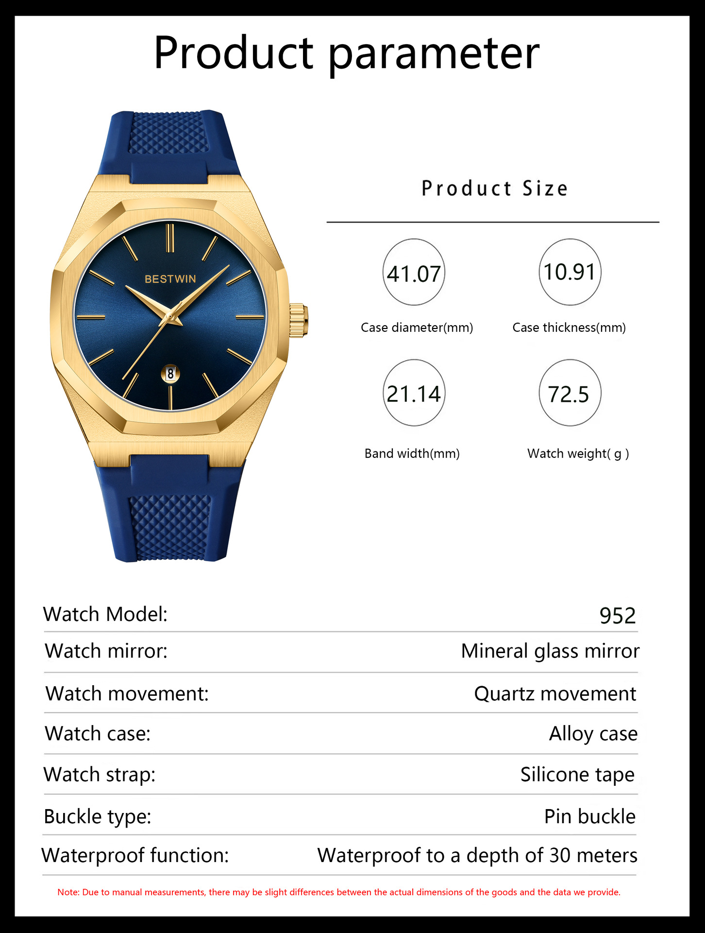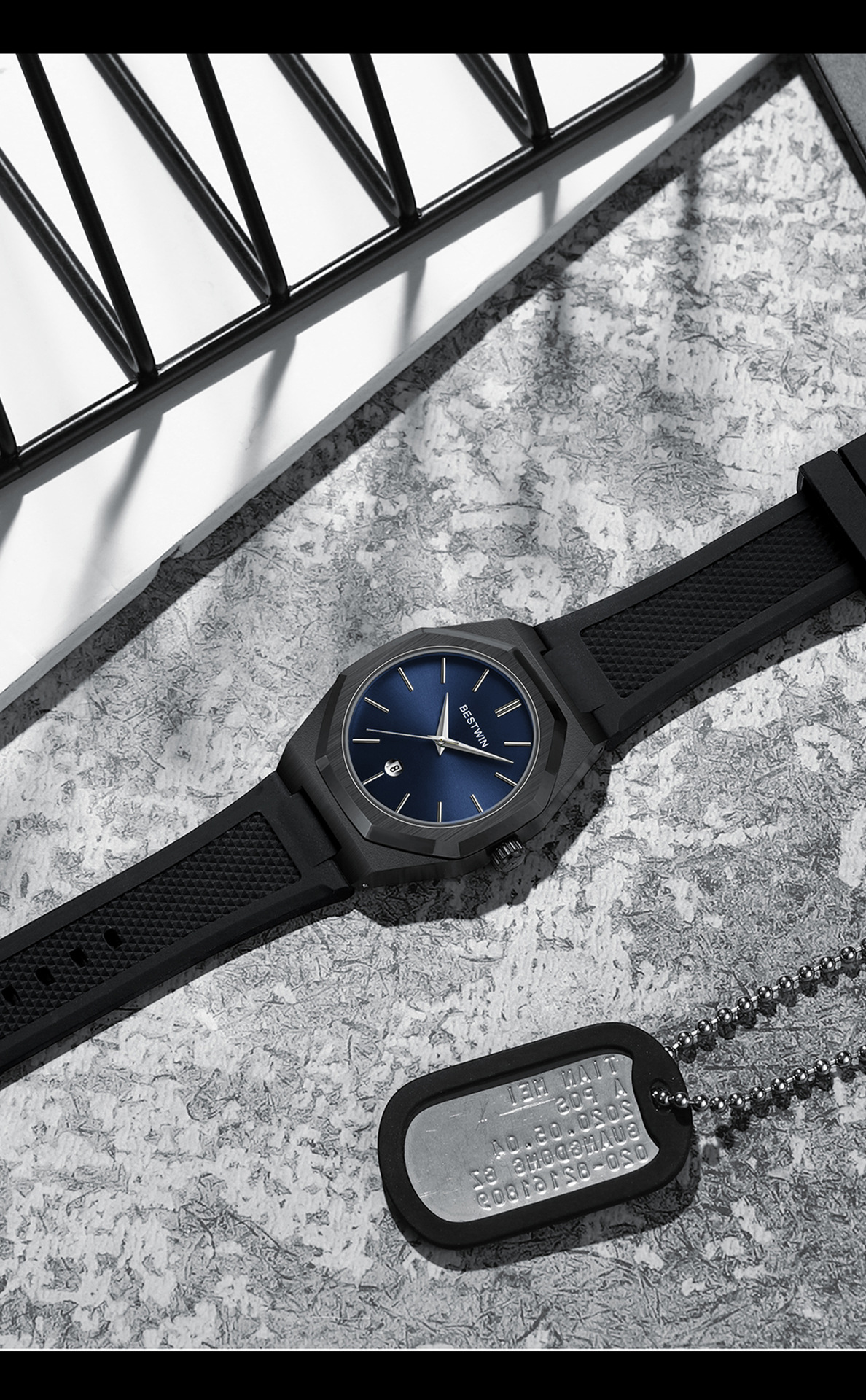 硅胶表带石英表男士手表男博士通BESTWIN日历时尚男表