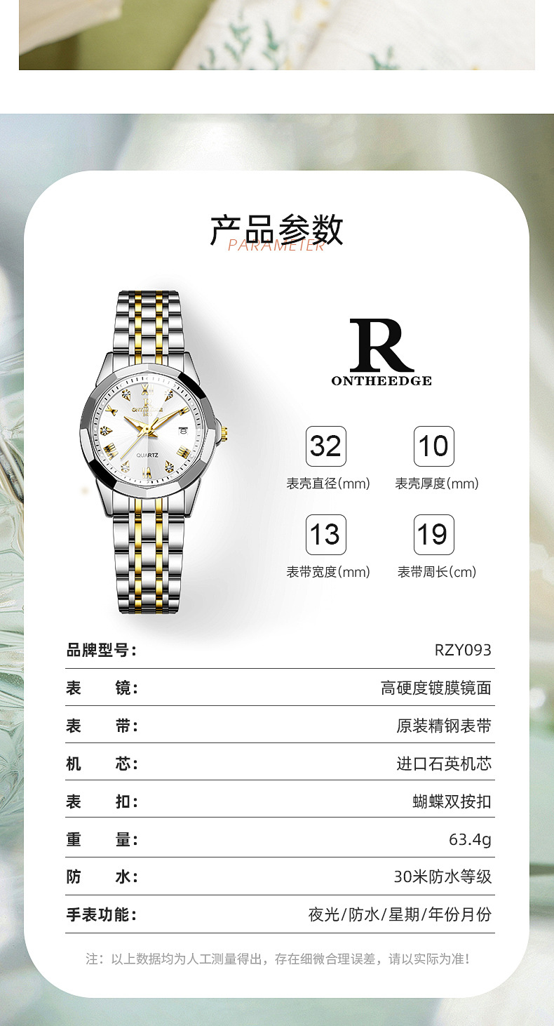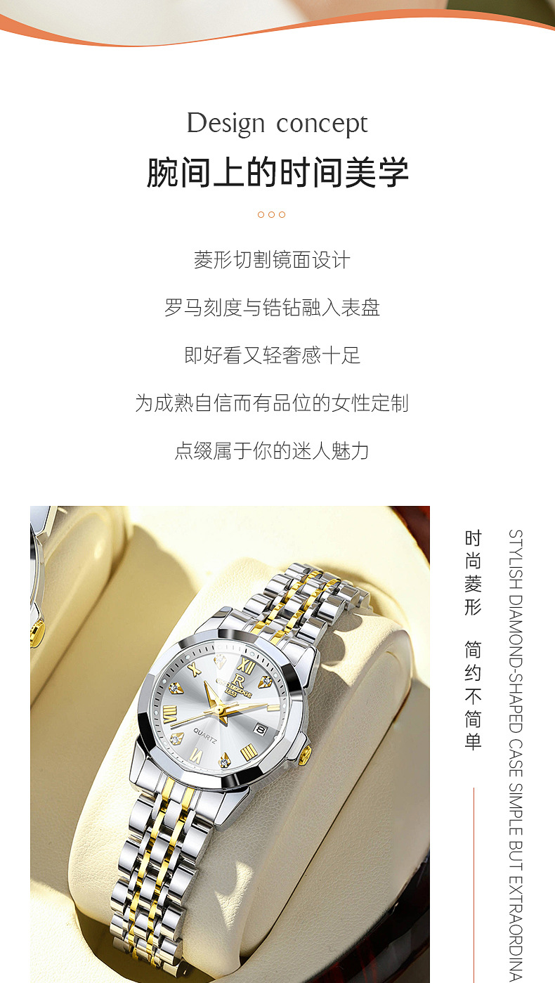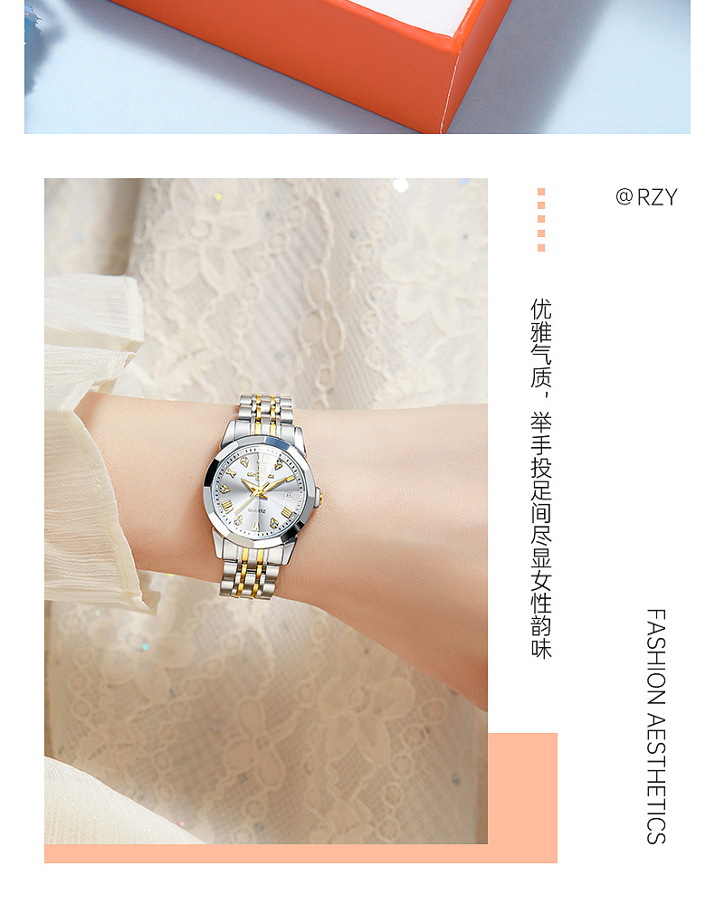 rzy093金白钢【送橙色表盒+手提袋+爱心手镯】