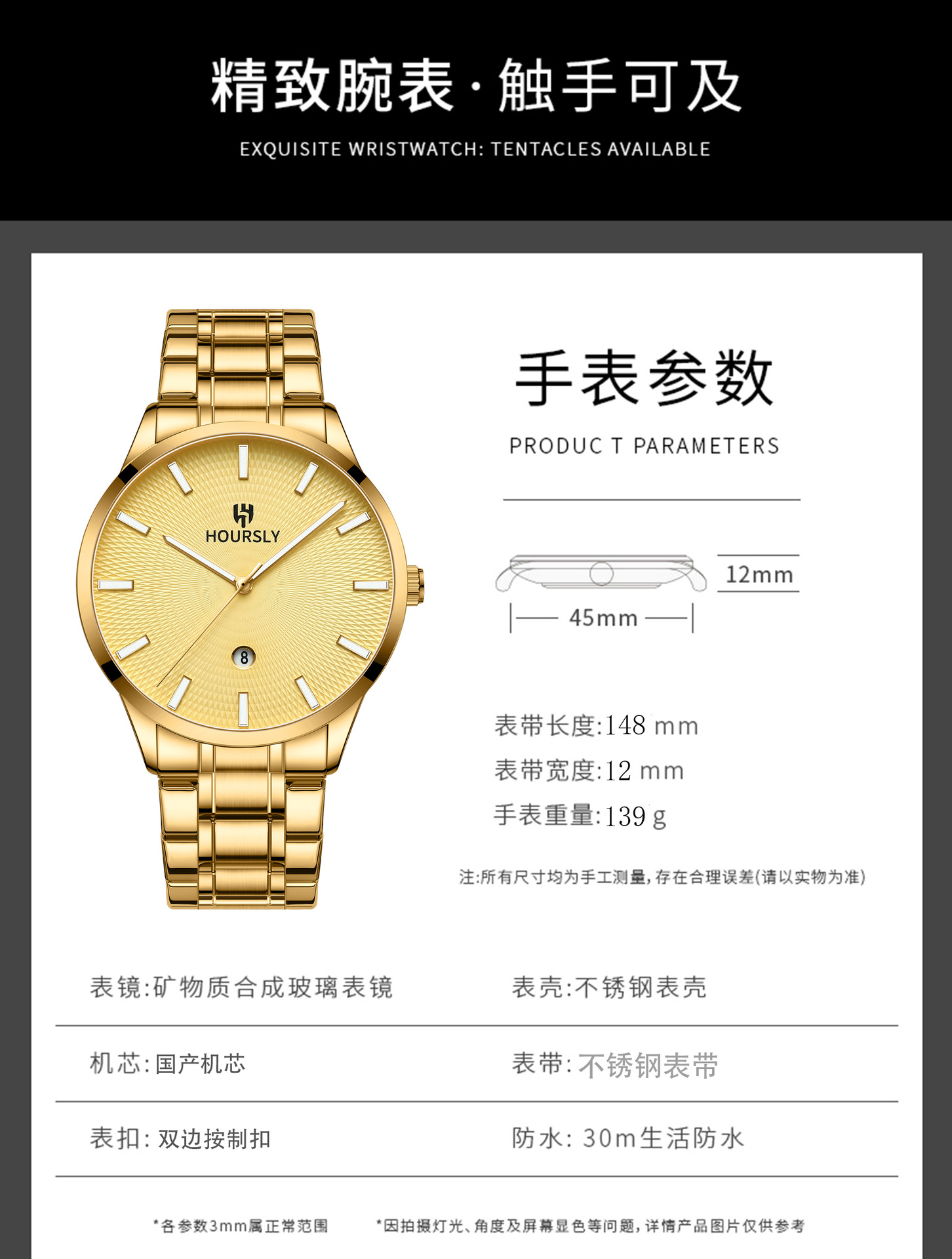 瑞士品牌男士手表防水夜光奢华新款石英腕表