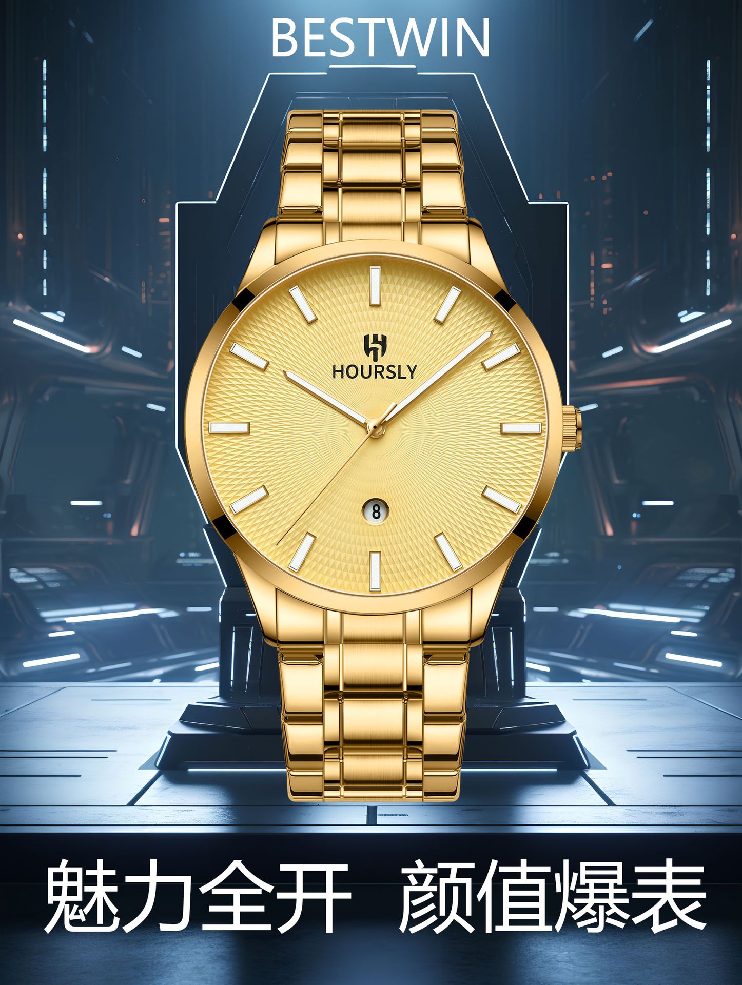 简约男士手表男博士通BESTWIN日历夜光商务时尚男表