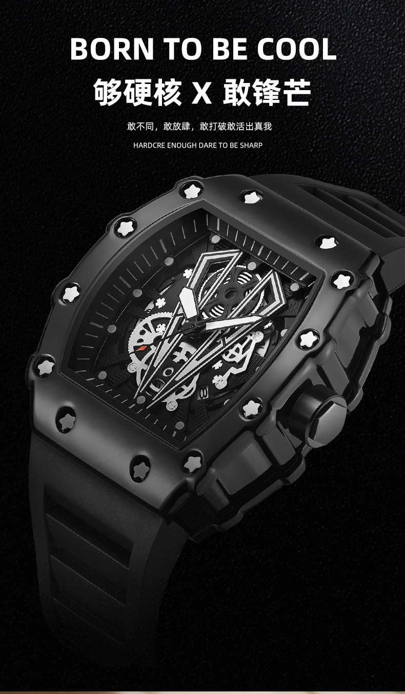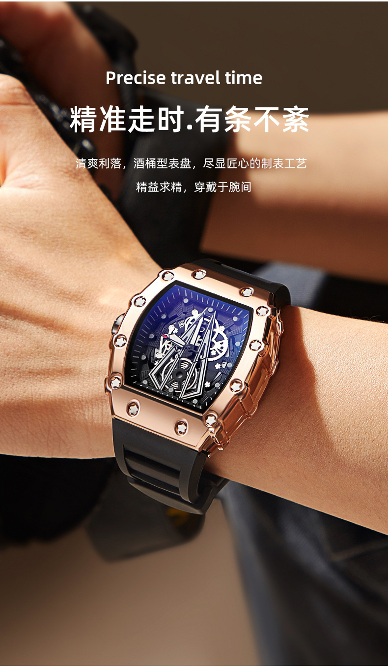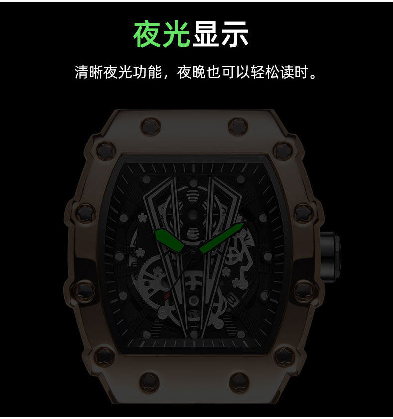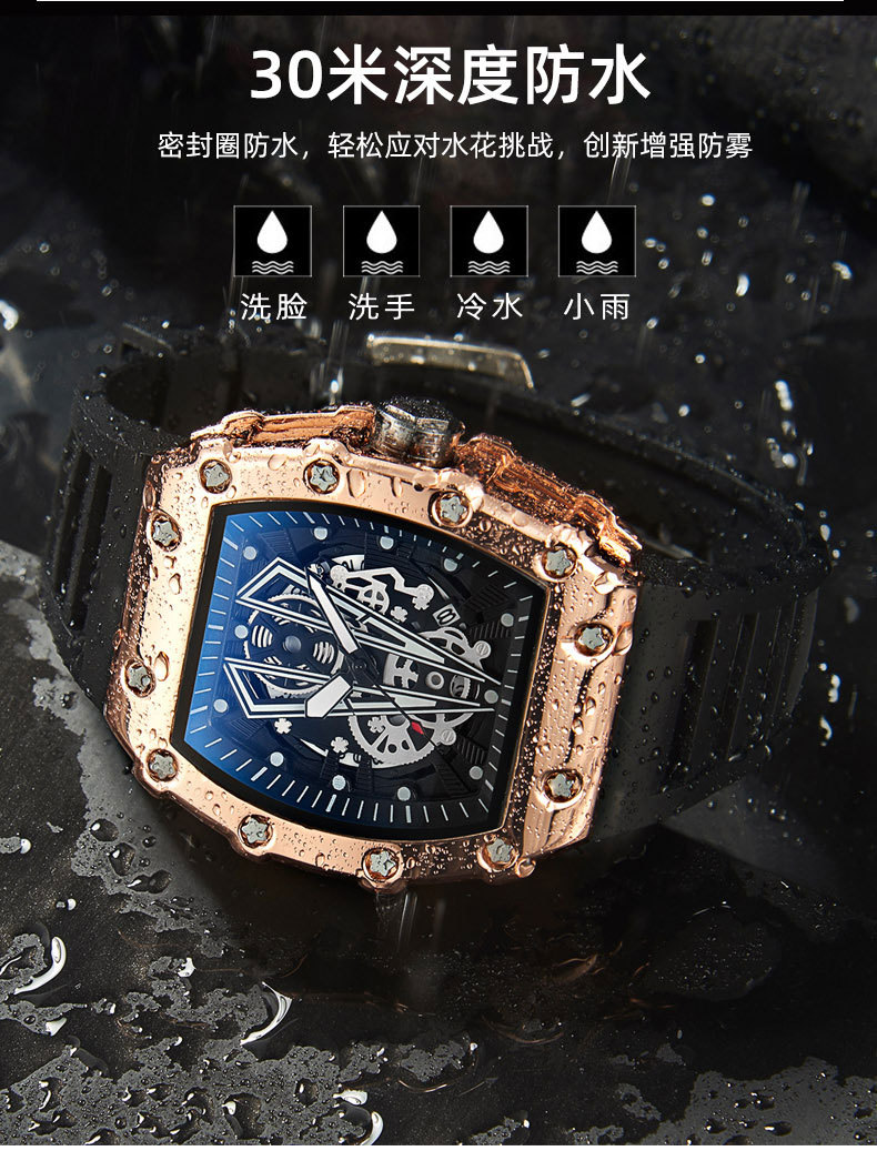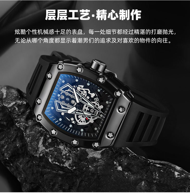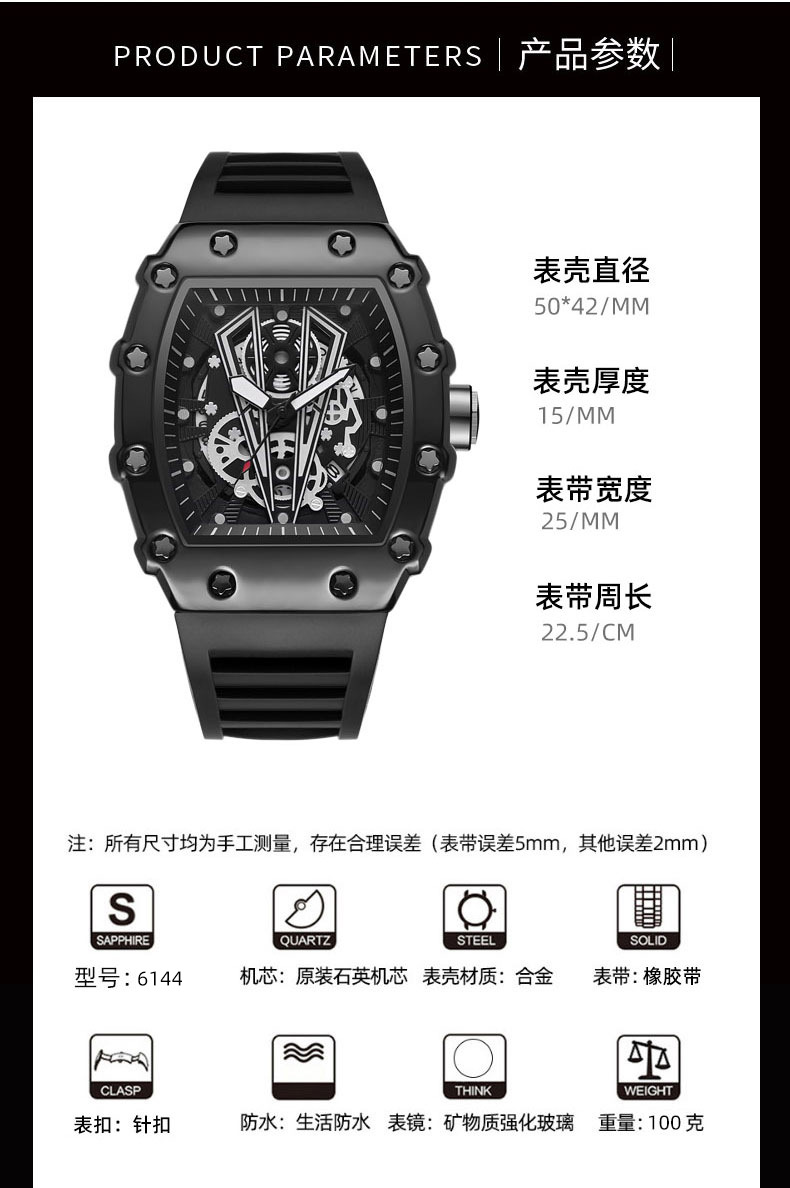 手表大表盘男士石英表防水运动手表方形男表夜光手表男