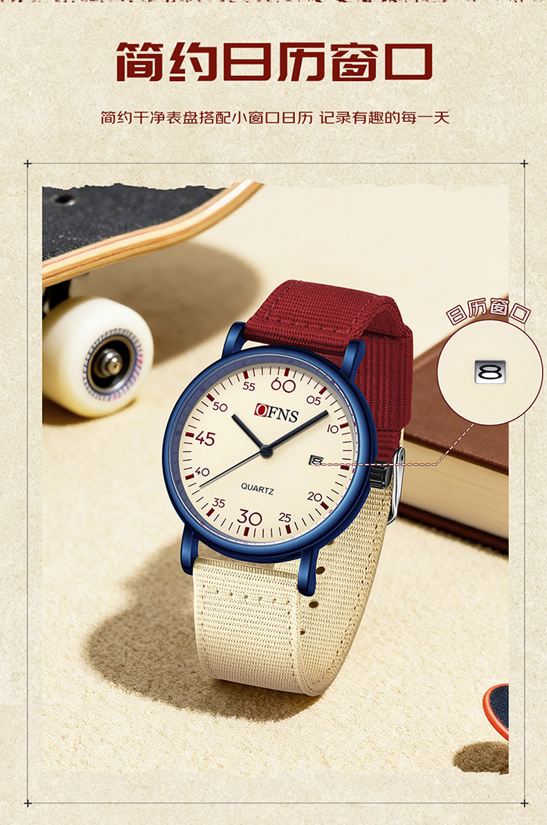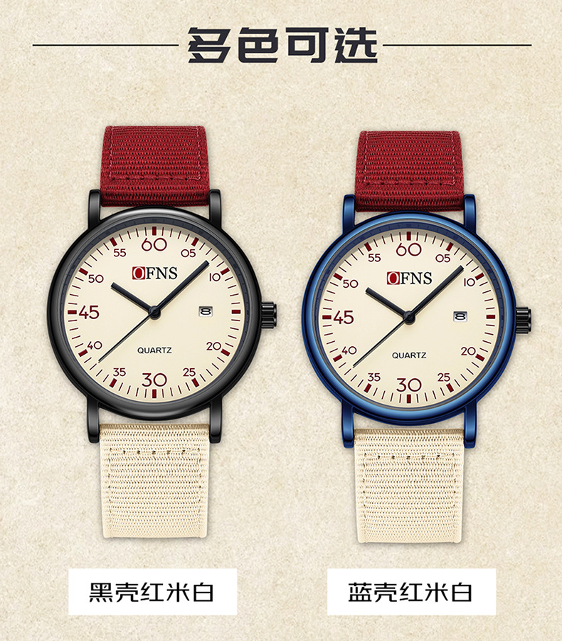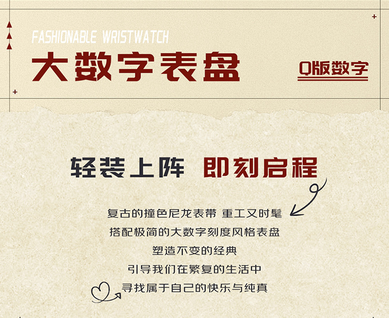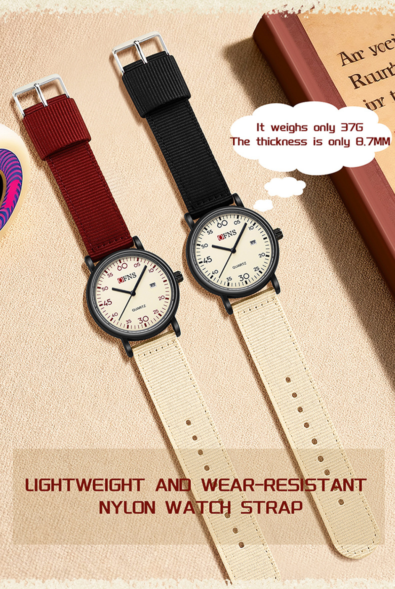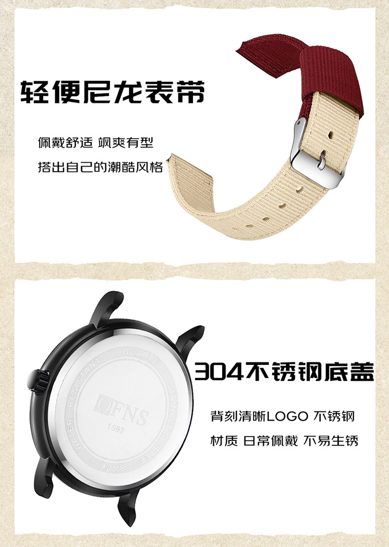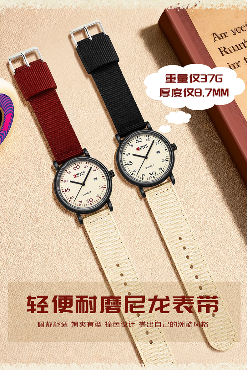 新款学生考试手表男女通用百搭轻薄尼龙带手表Q版表盘石英表