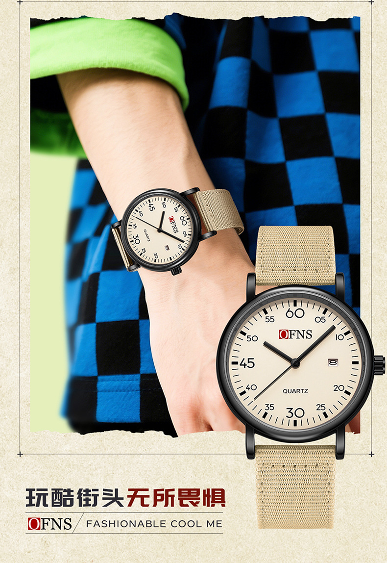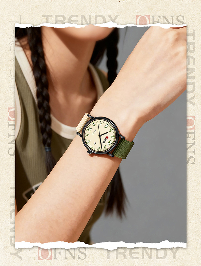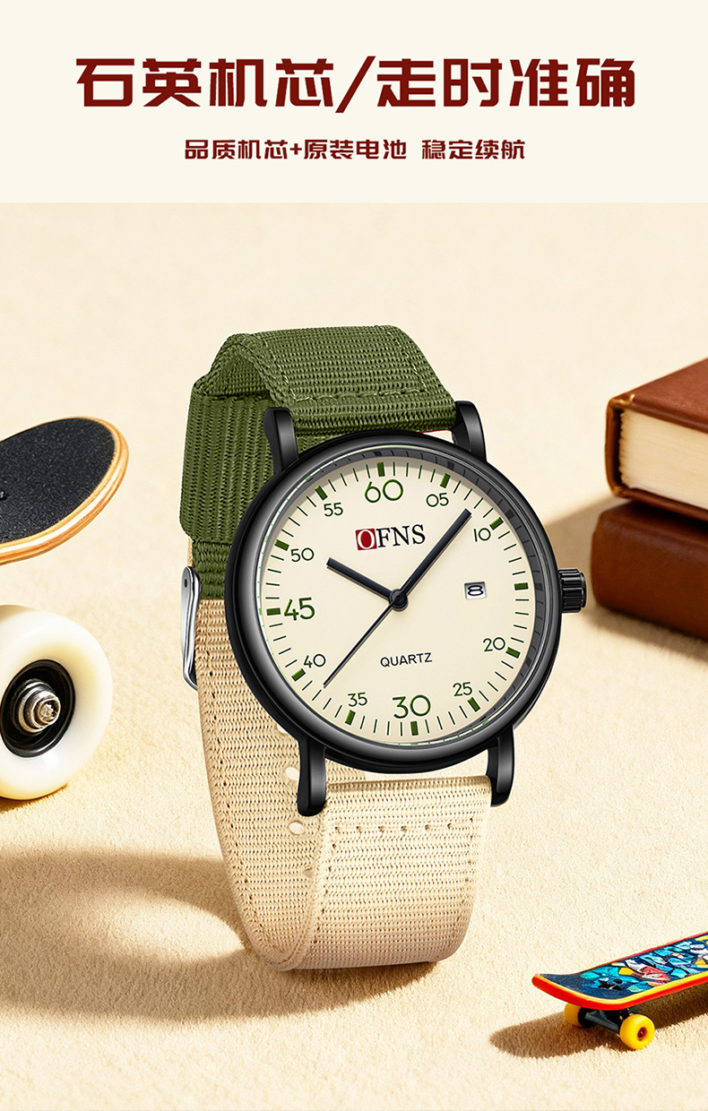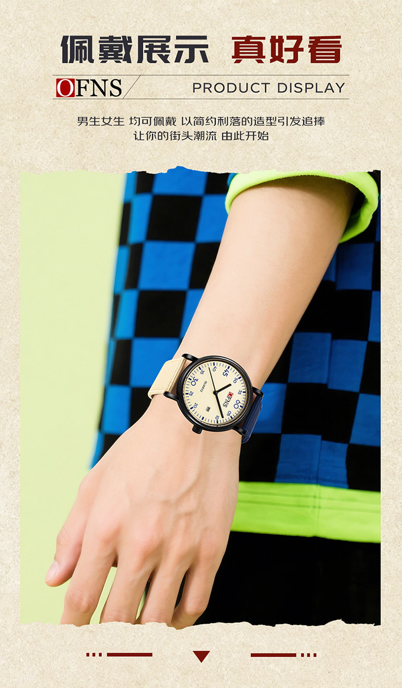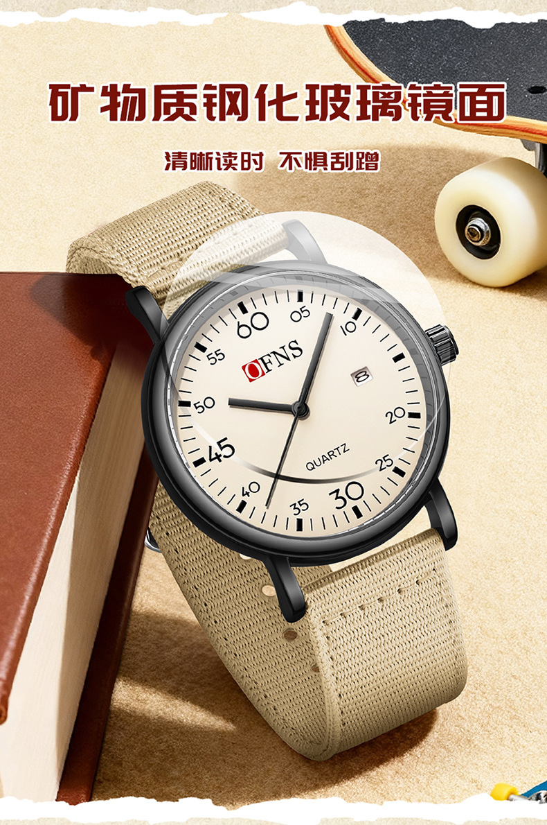 新款学生考试手表男女通用百搭轻薄尼龙带手表Q版表盘石英表