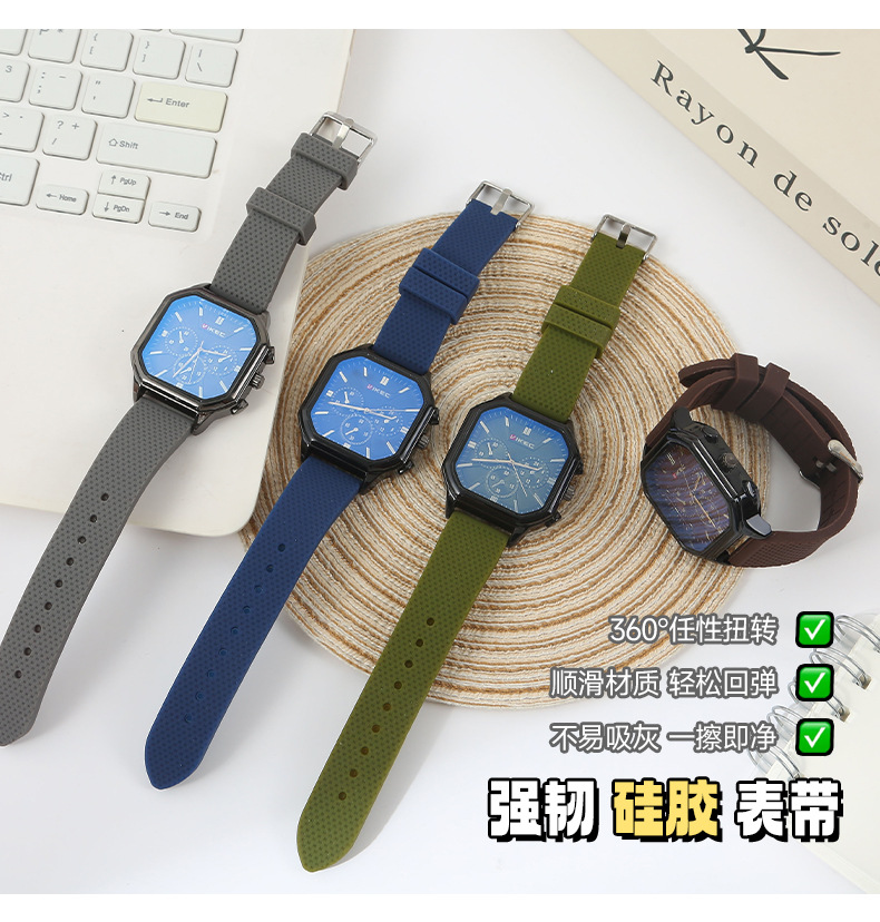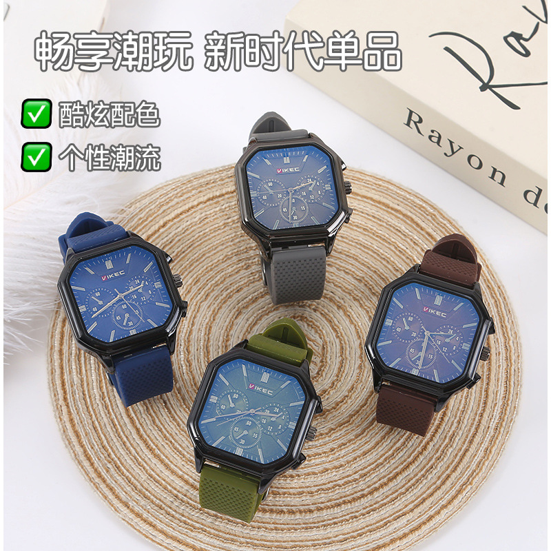 新款大表盘男士石英表方形运动手表学生党男款小众气质潮流腕表