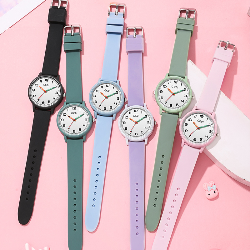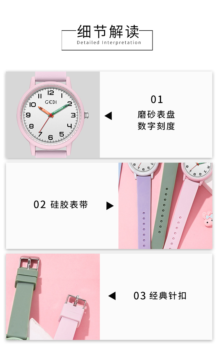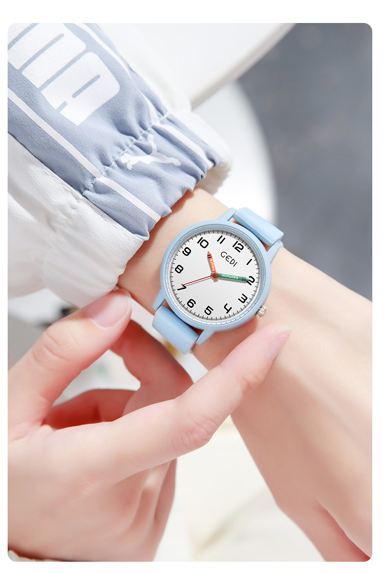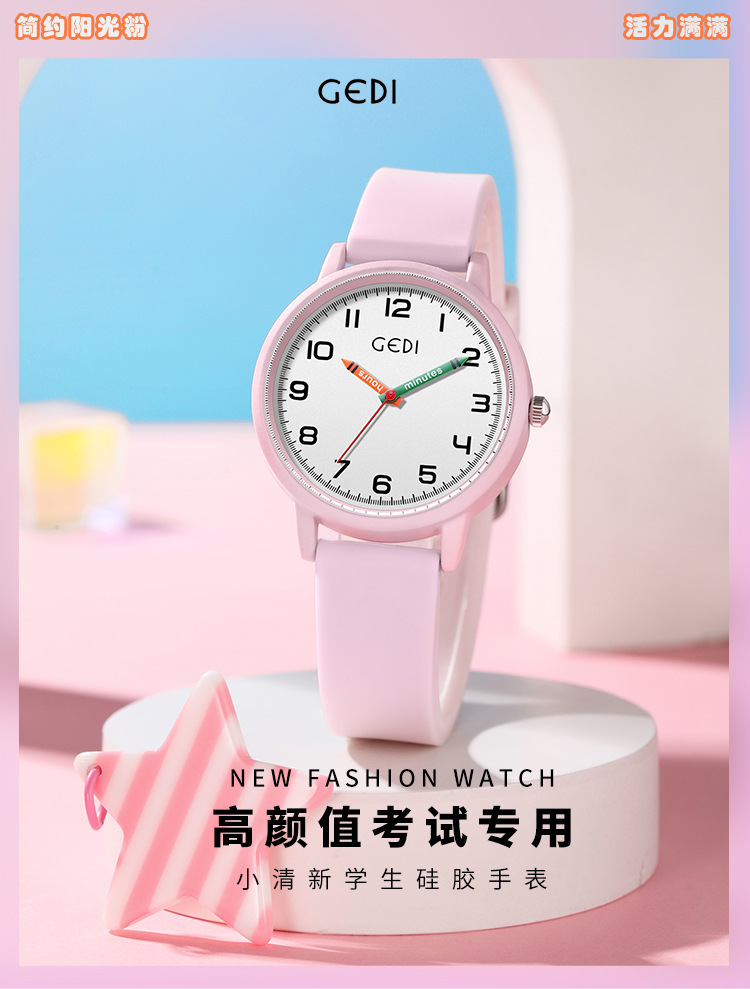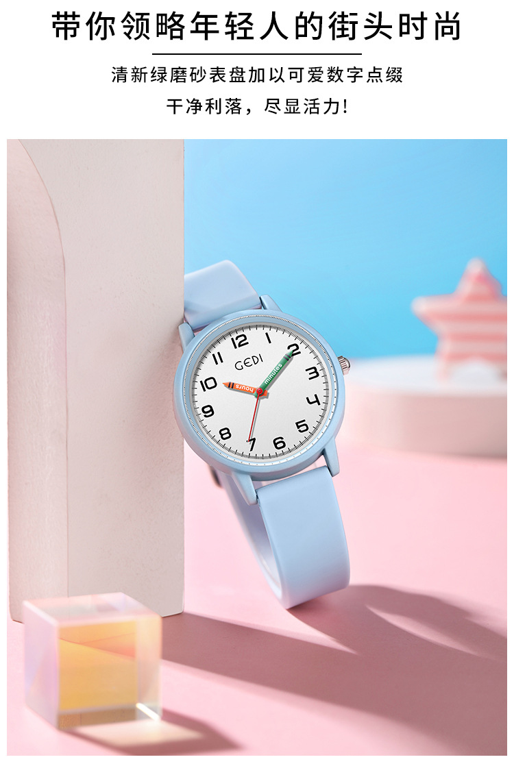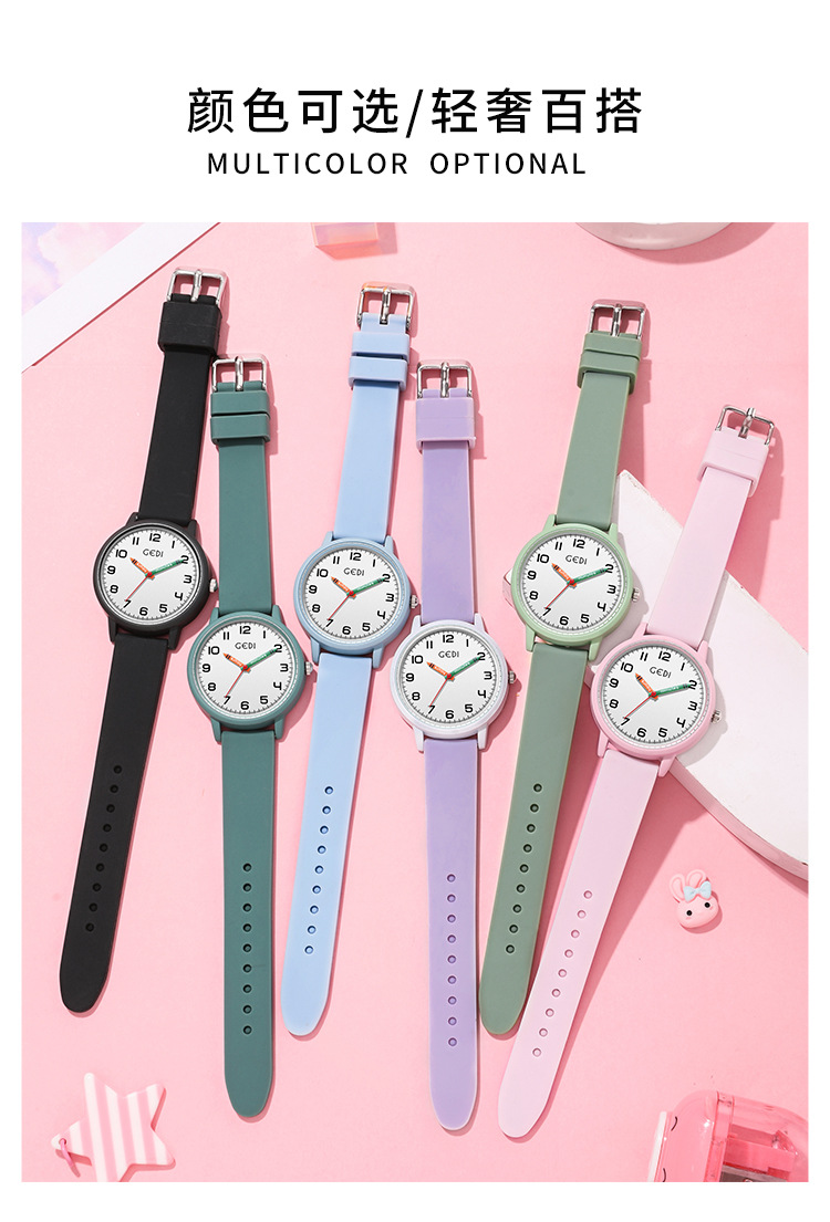 歌迪简约学生公务员考试专用表糖果色硅胶表女士铅笔针石英手表