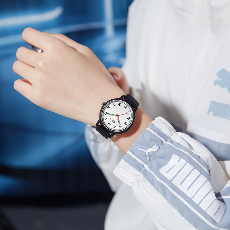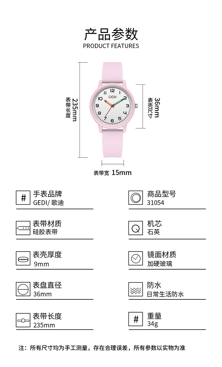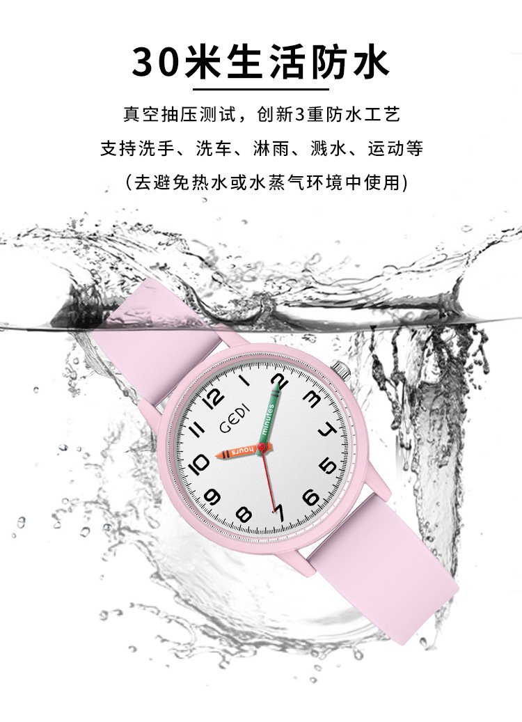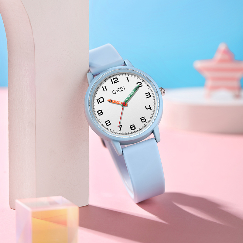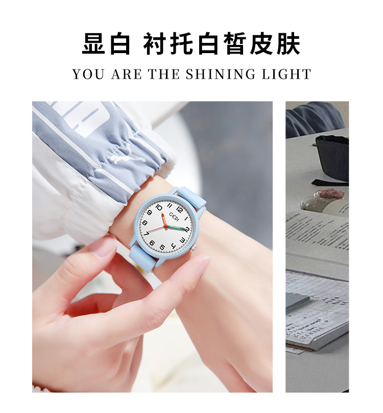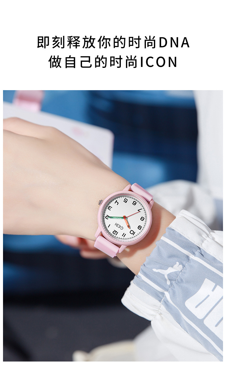 歌迪简约学生公务员考试专用表糖果色硅胶表女士铅笔针石英手表