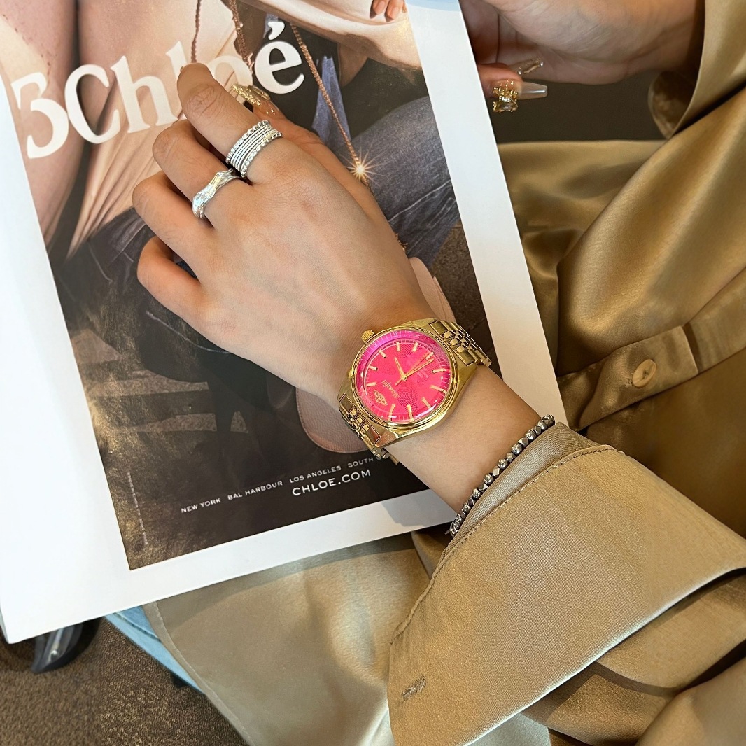 西太后手表玫红碎冰蓝土星小金表火龙果石英女手表