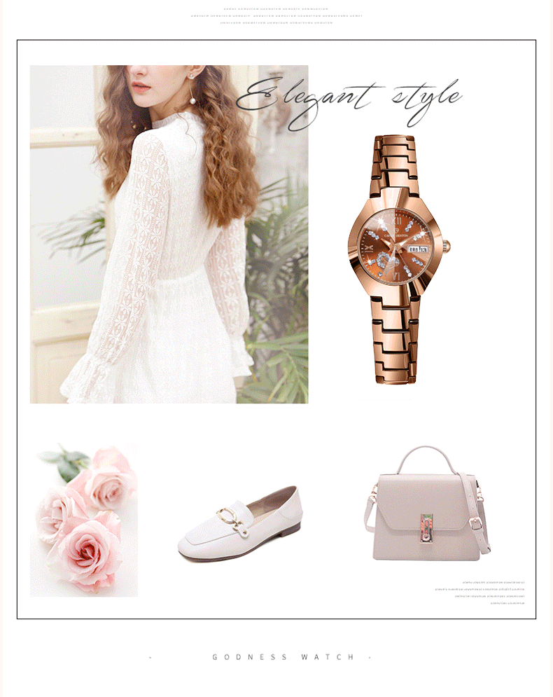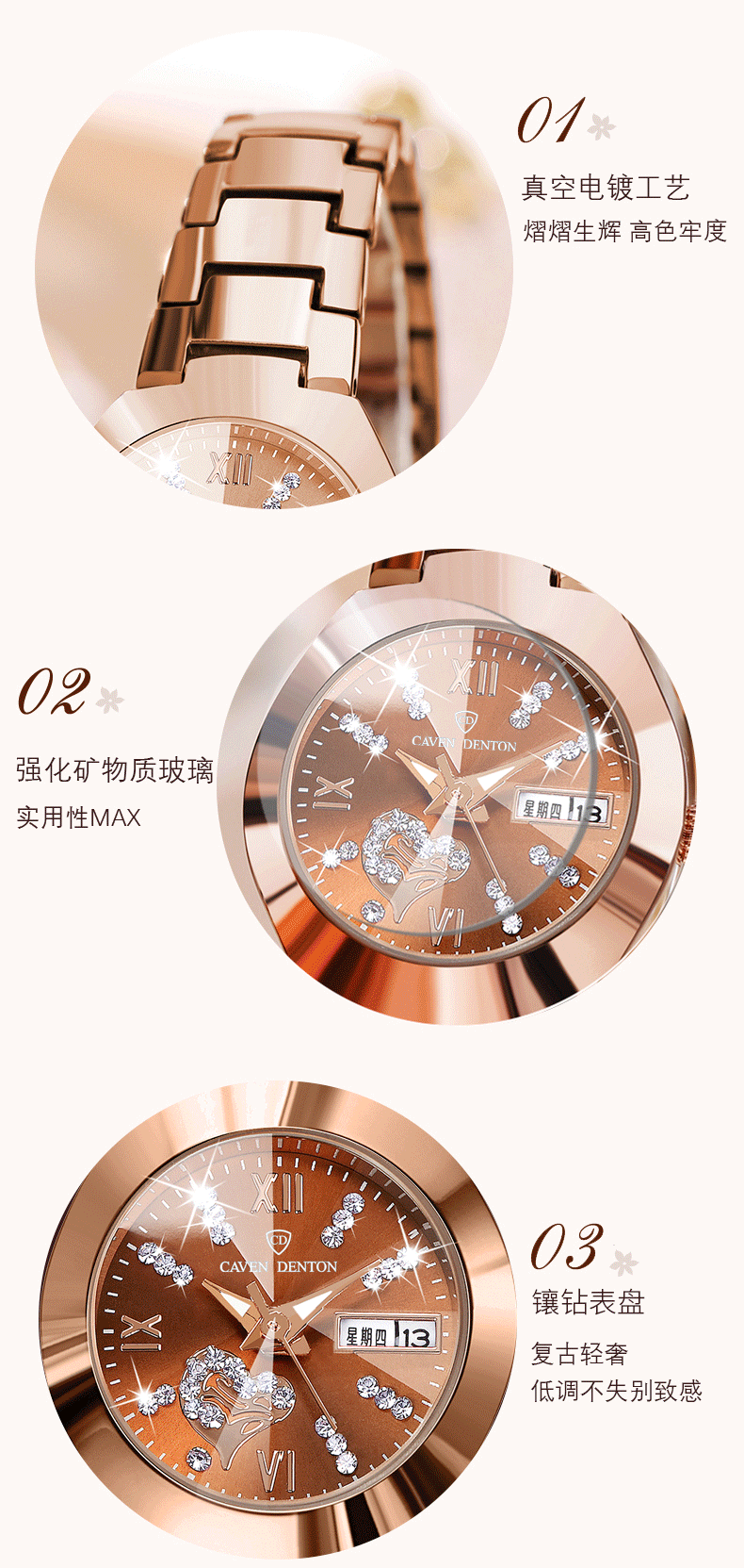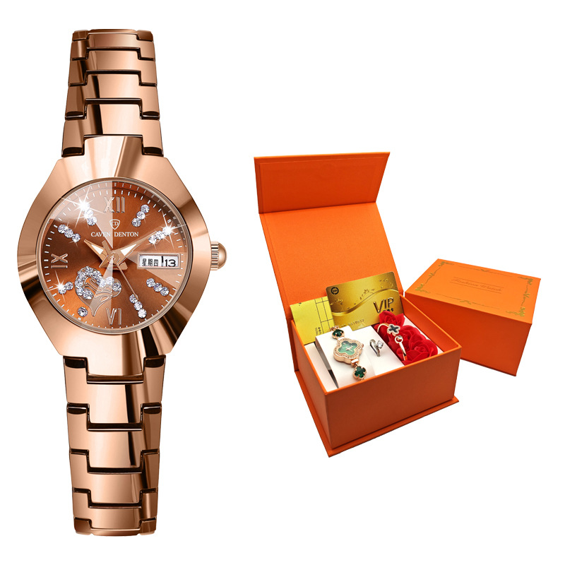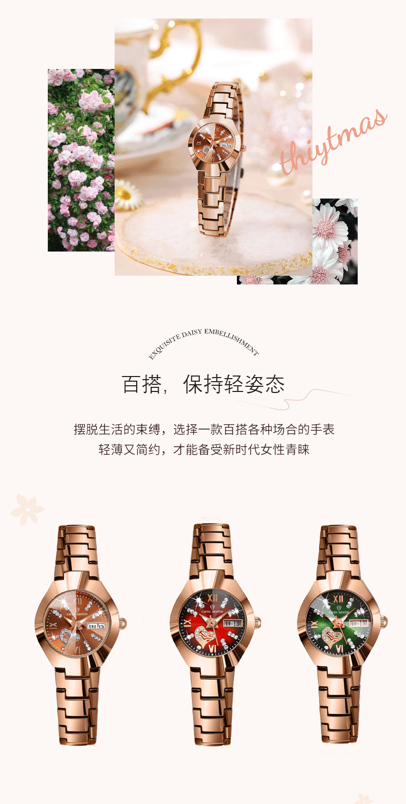 韩版时尚潮流女士腕表双日历镶钻防水夜光手表