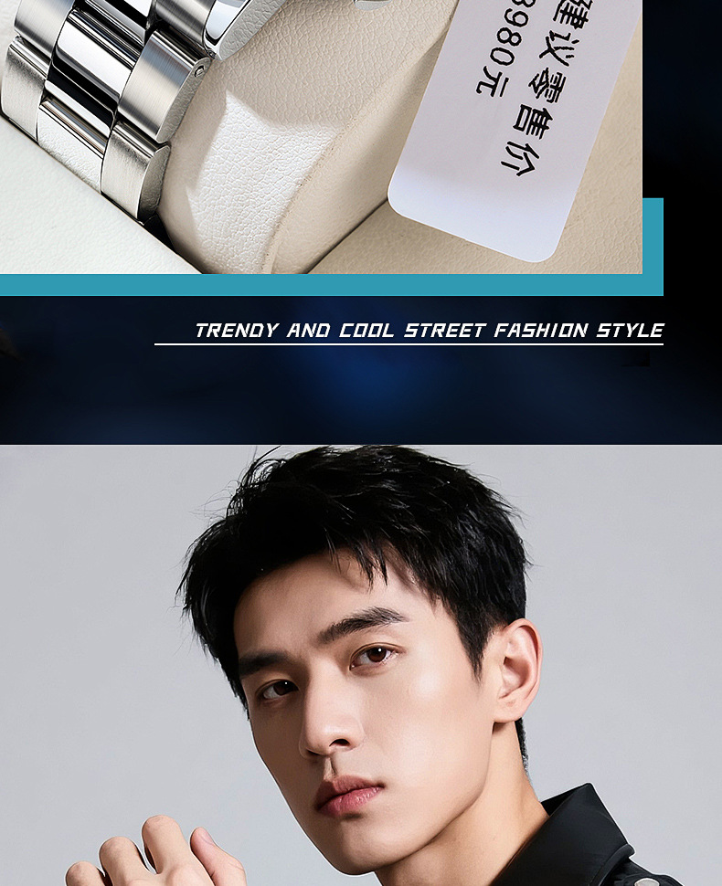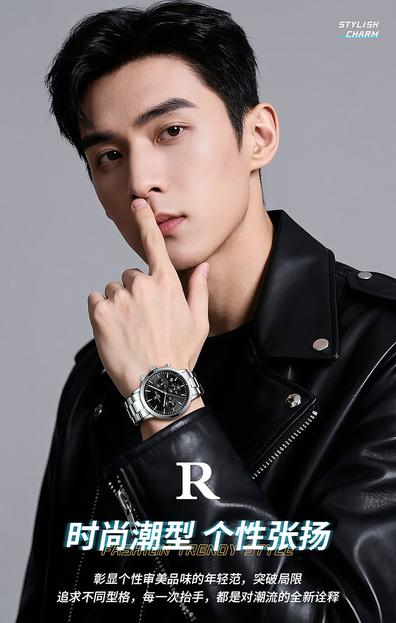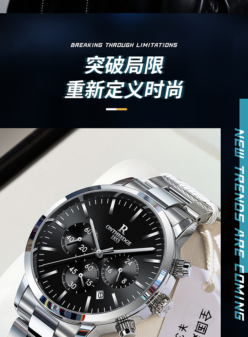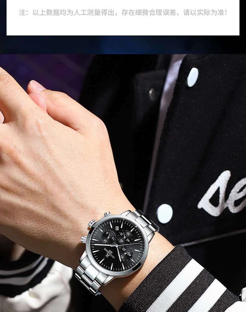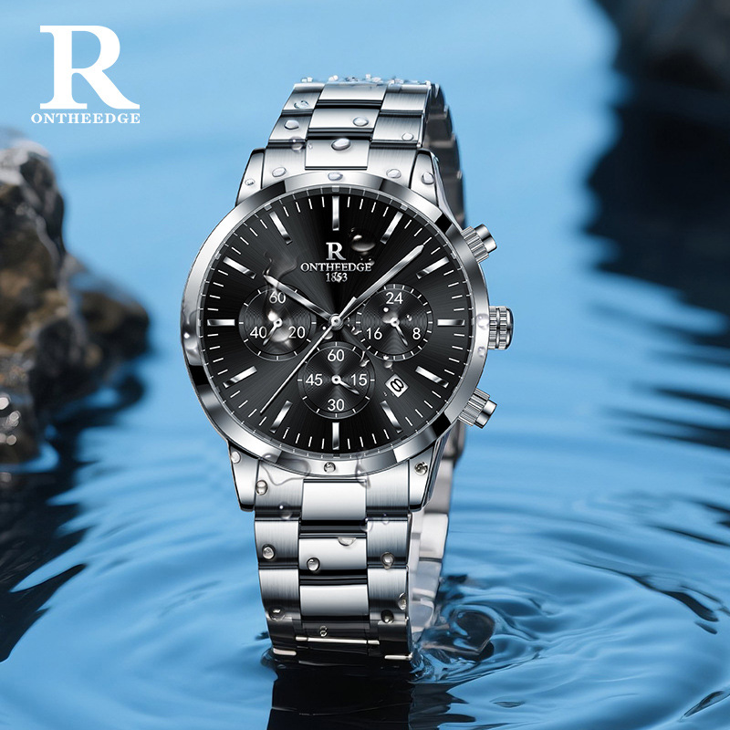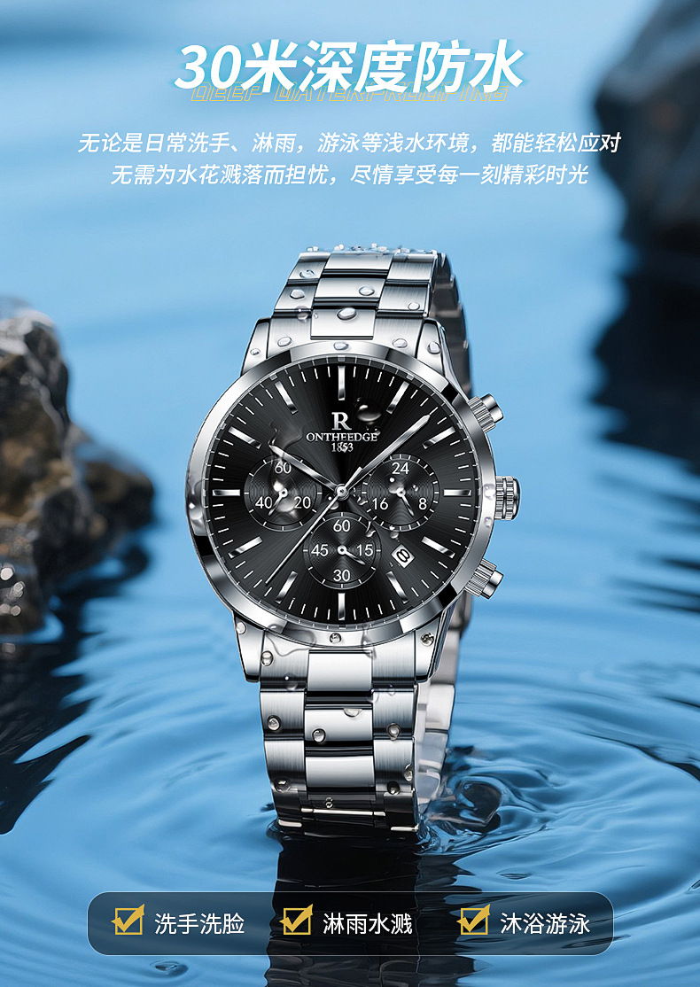 瑞之缘新款多功能防水玻璃石英表实心钢带时尚商务高级感男士手表