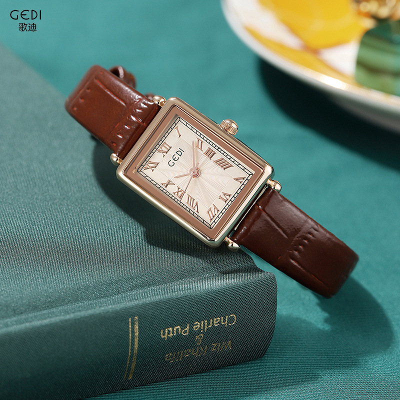 歌迪女士罗马复古风小方盘学生百搭竹节纹皮带石英防水手表