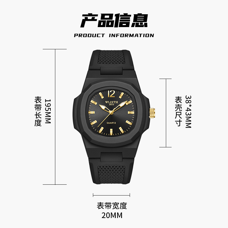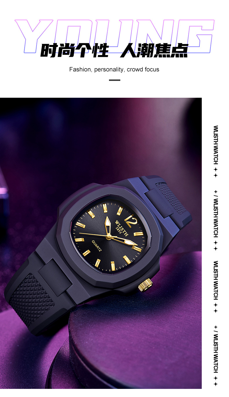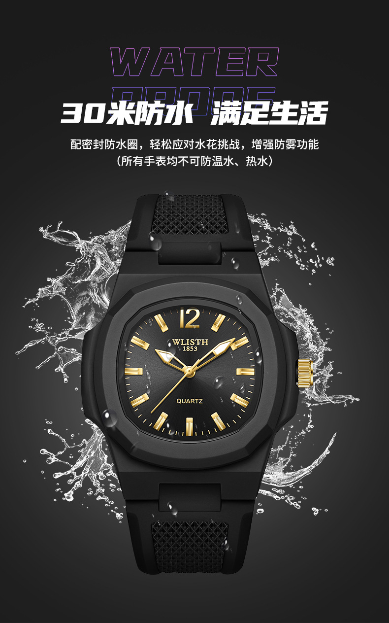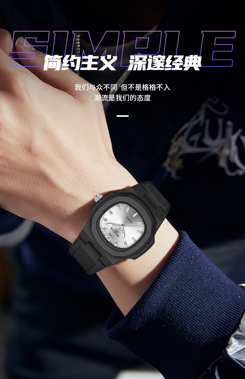 沃力仕时尚方块男士手表户外运动学生表防水潮流男石英表