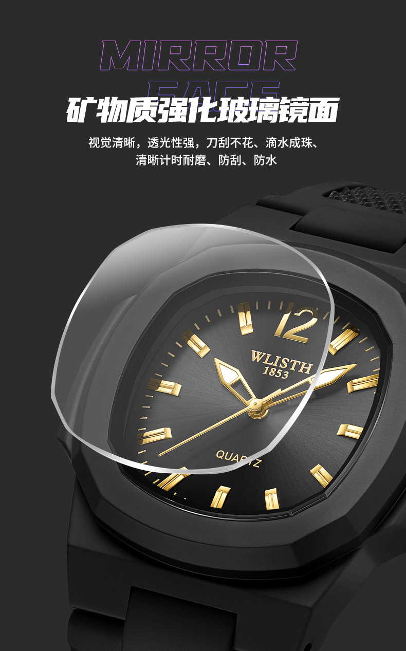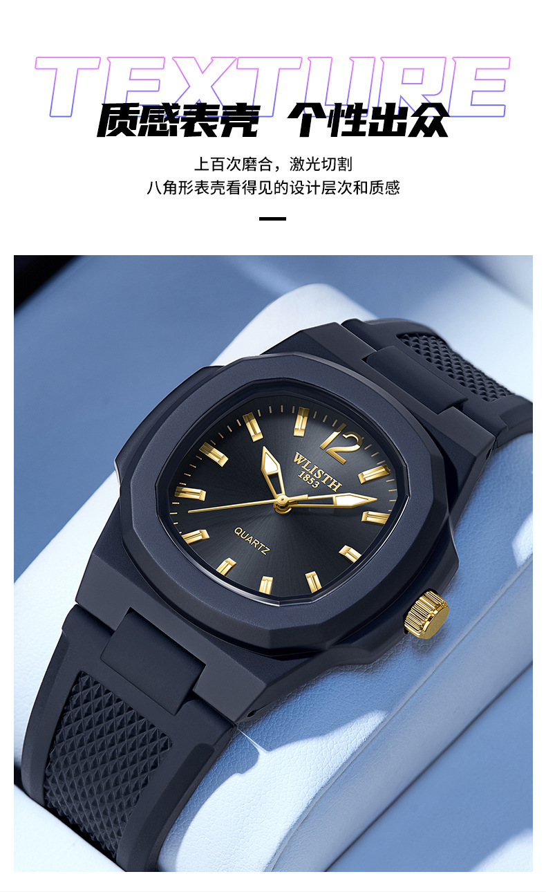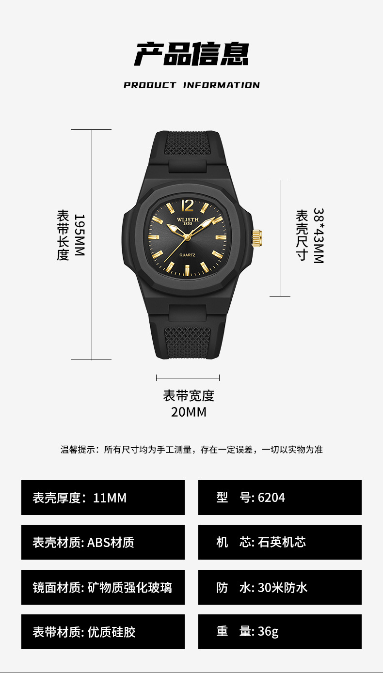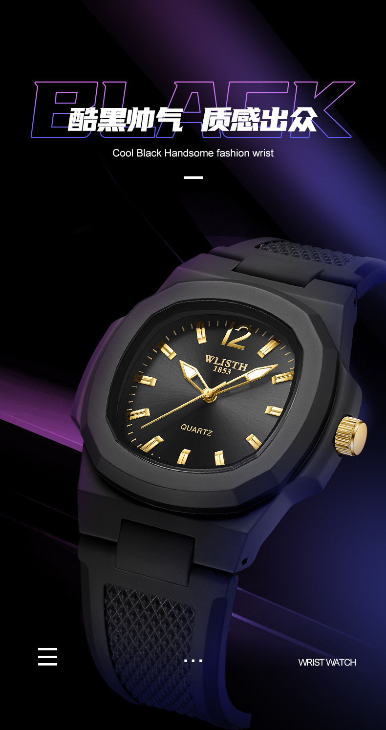 沃力仕时尚方块男士手表户外运动学生表防水潮流男石英表