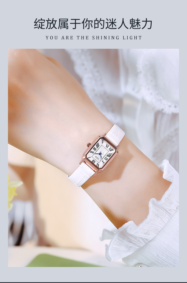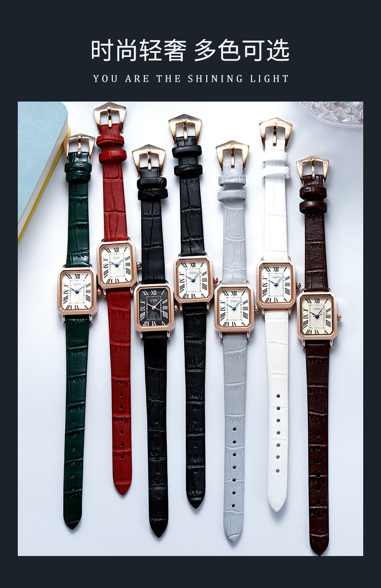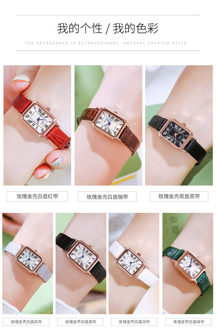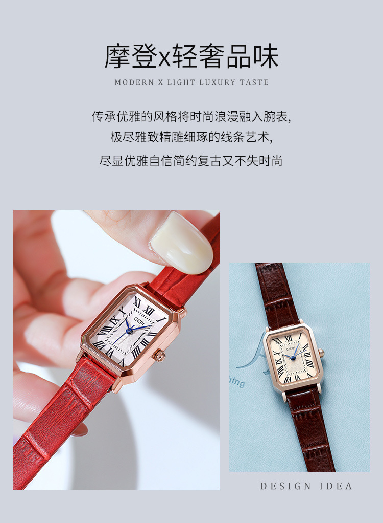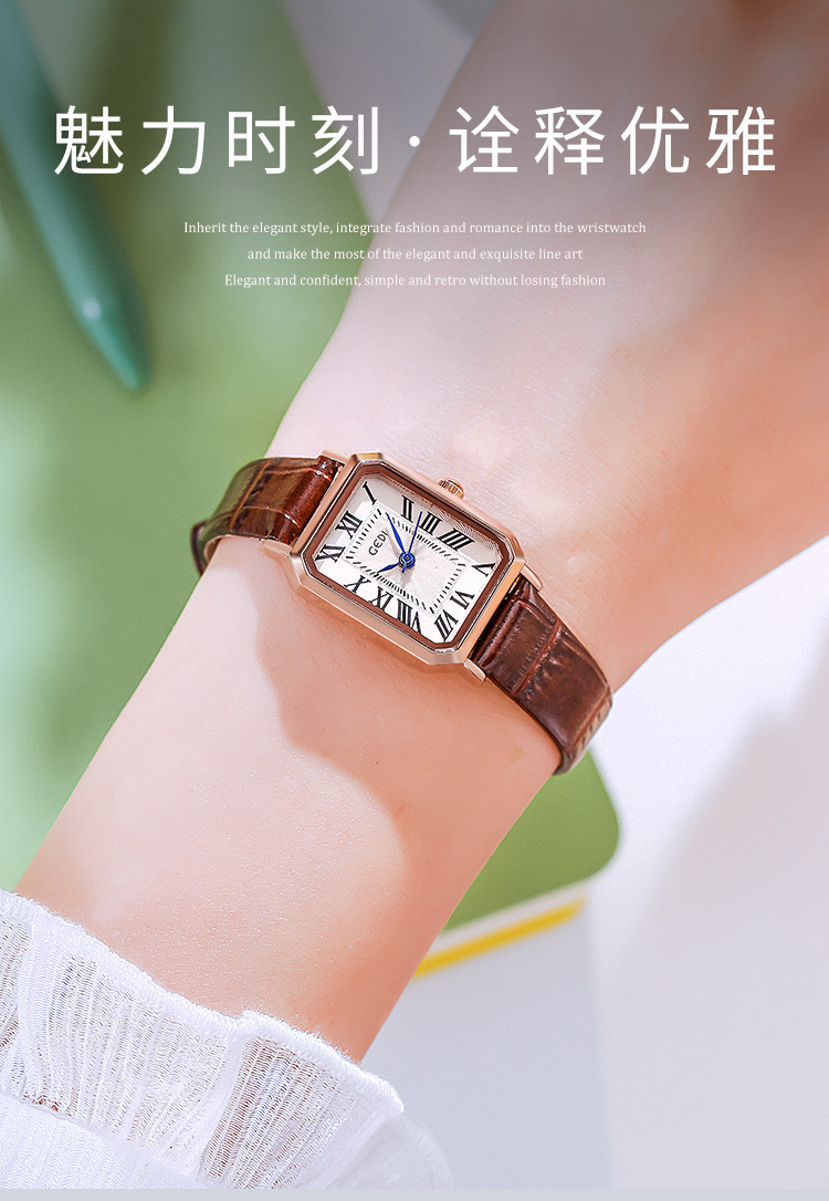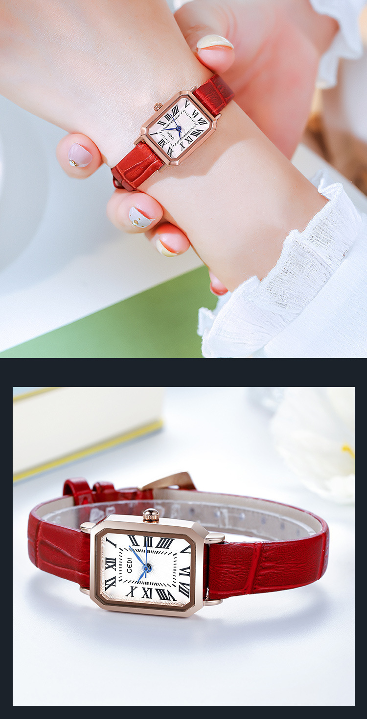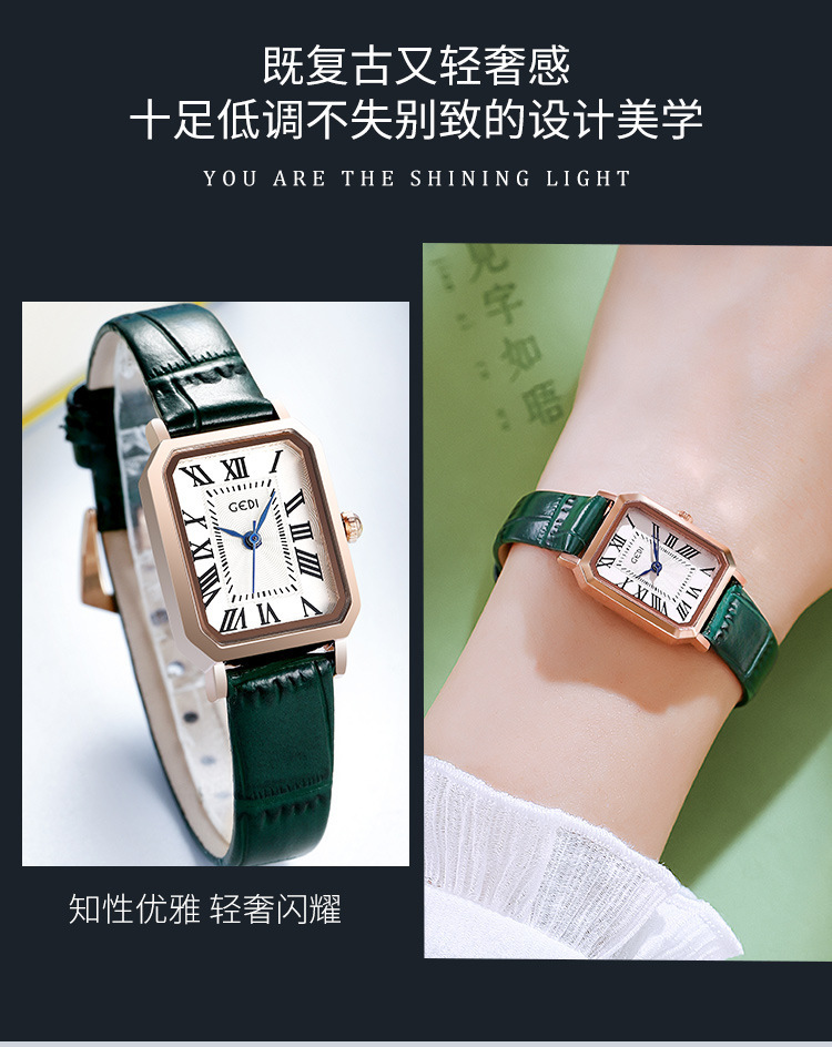 歌迪复古小方盘气质学生表小众高级感皮带碗表女士防水石英手表