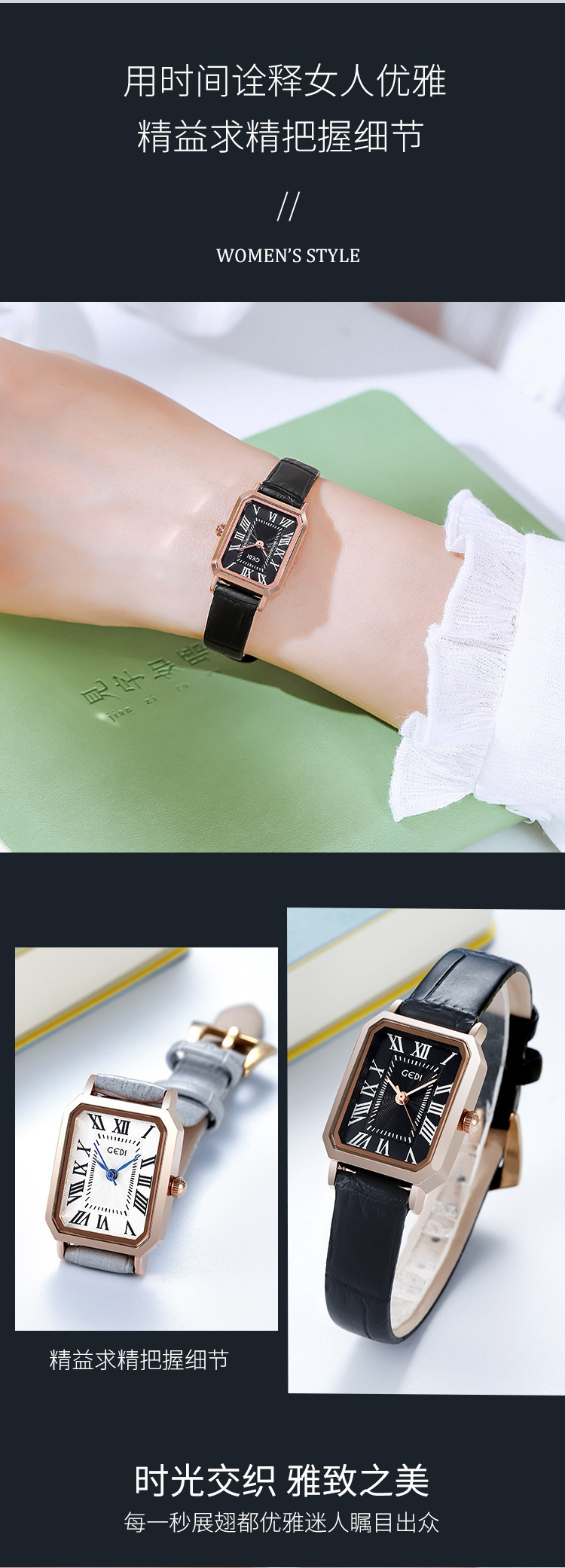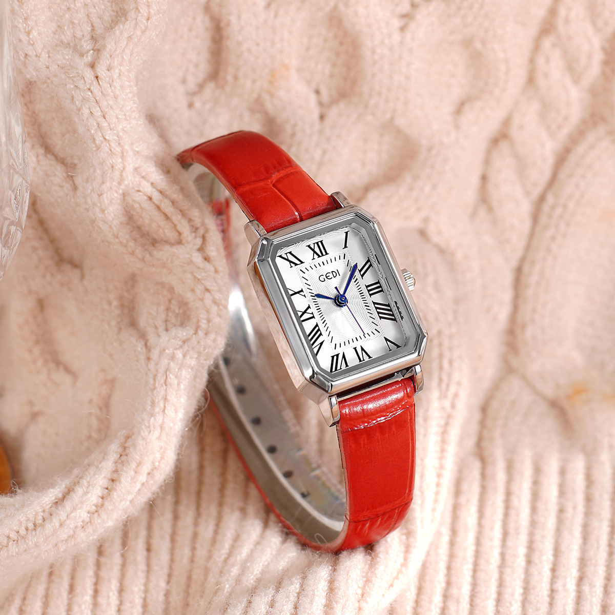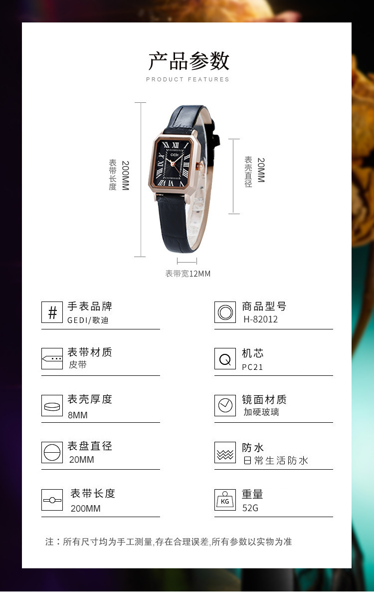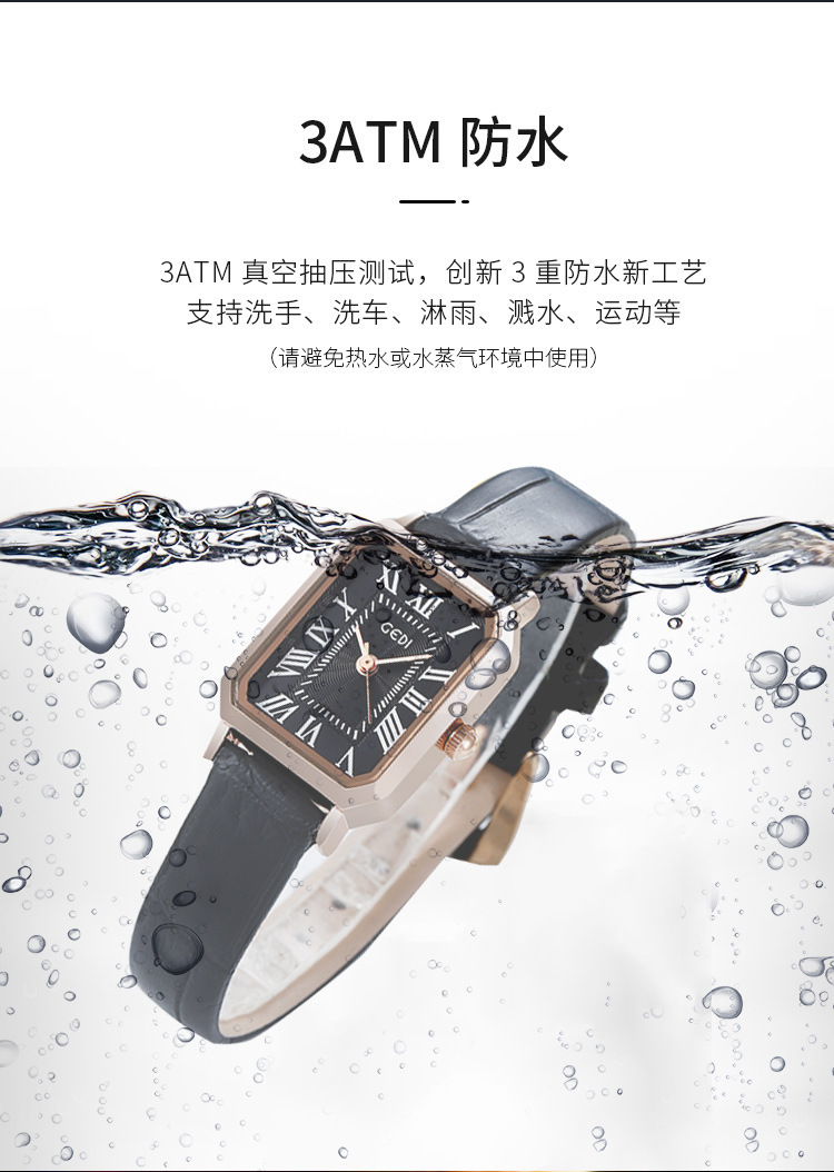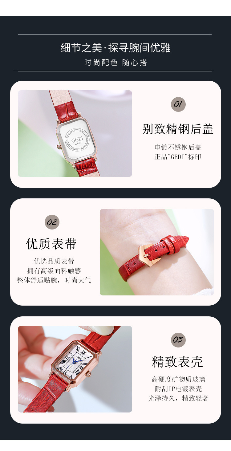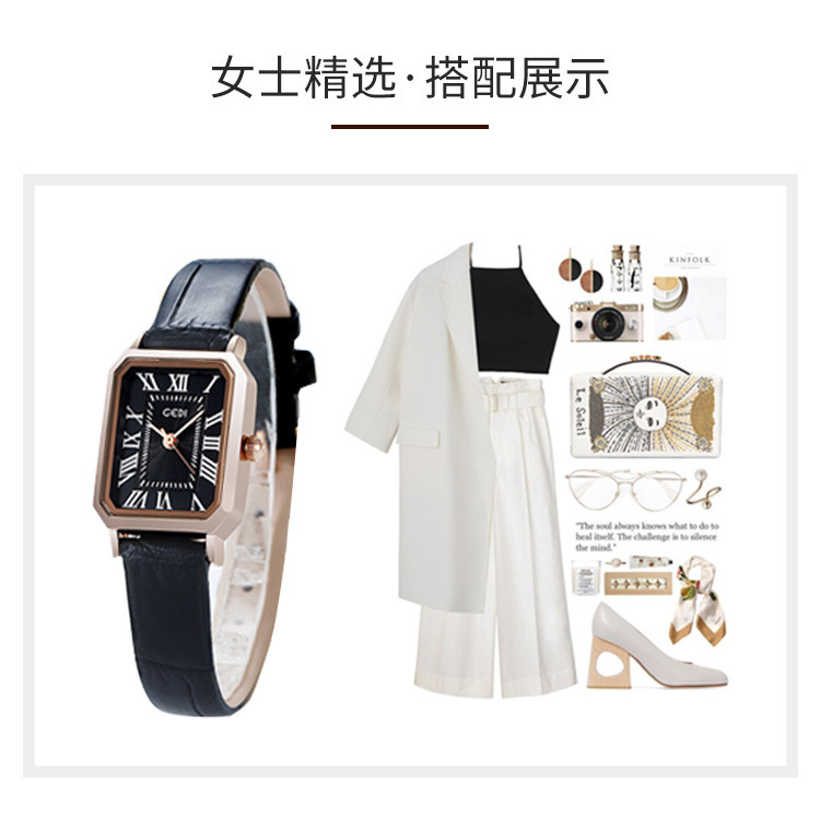 歌迪复古小方盘气质学生表小众高级感皮带碗表女士防水石英手表