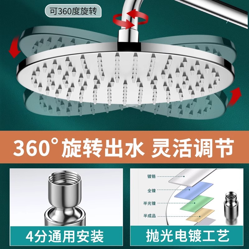 - 不锈钢加厚款【亮银-10英寸-圆形】加厚防爆-增压大出水顶喷
