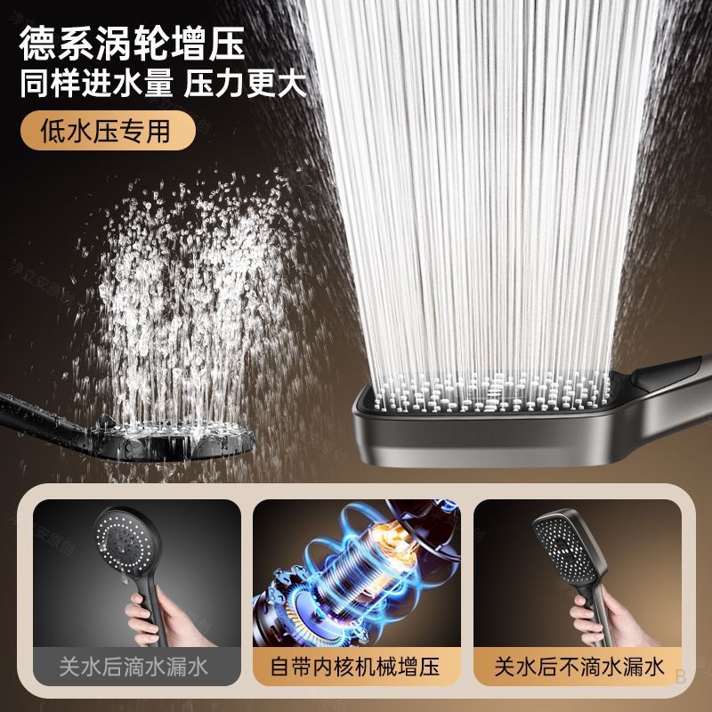 - 【枪灰黑套装3】增压花洒+1.5米防爆软管+免打孔支架