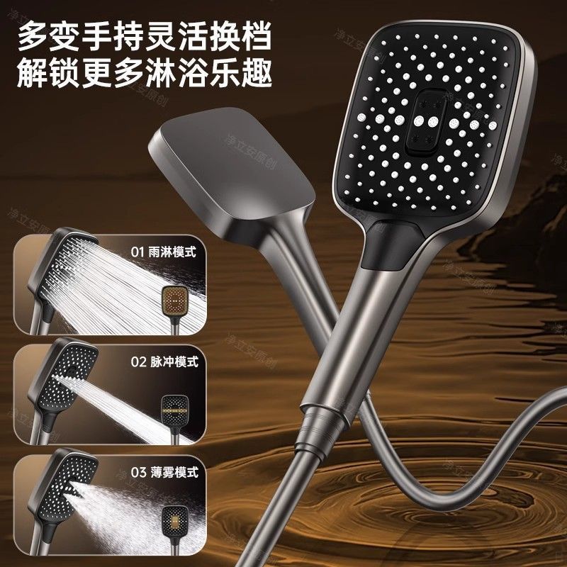 - 【星岩灰套装2】增压花洒+1.5米防爆软管