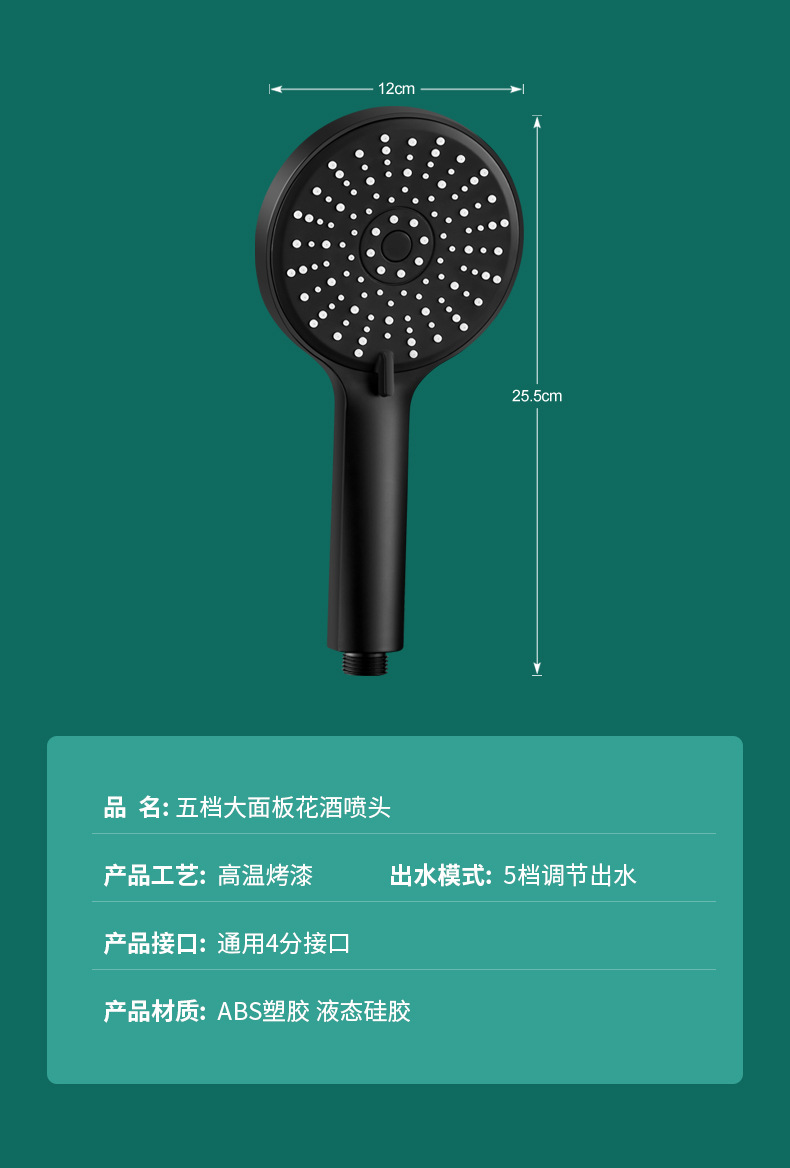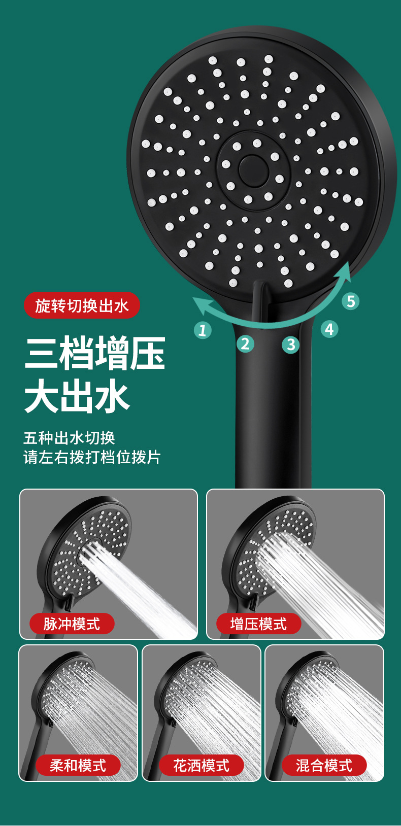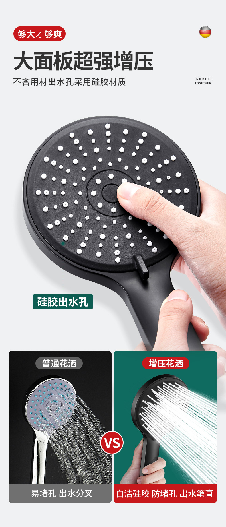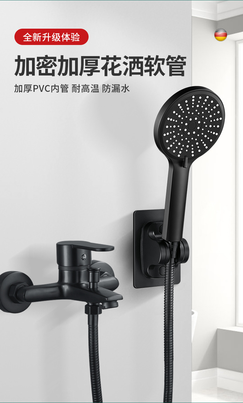- 【黑色套装5】2.0米花洒管+增压五档花洒+免打孔支架