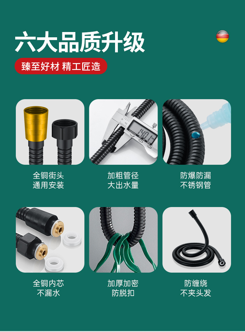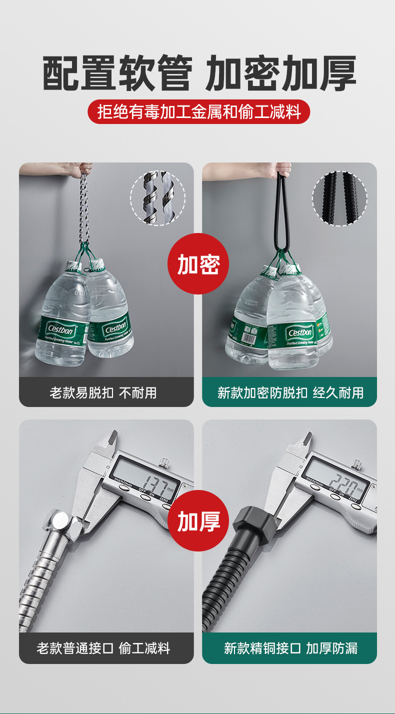 - 【枪灰套装4】2.0米花洒管+增压五档花洒