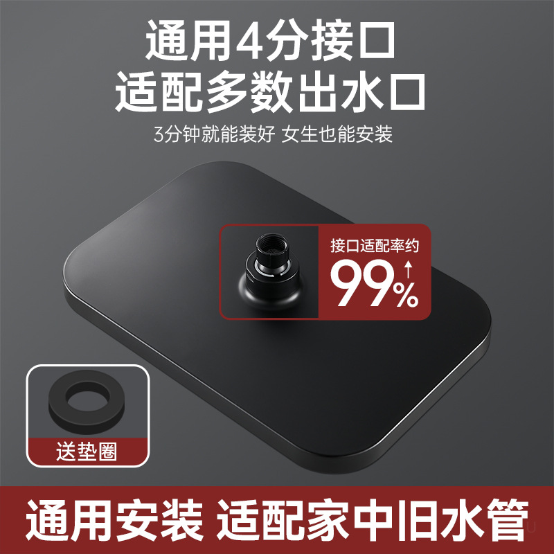 - 【黑色套装1】方形增压超大顶喷+增压4档花洒