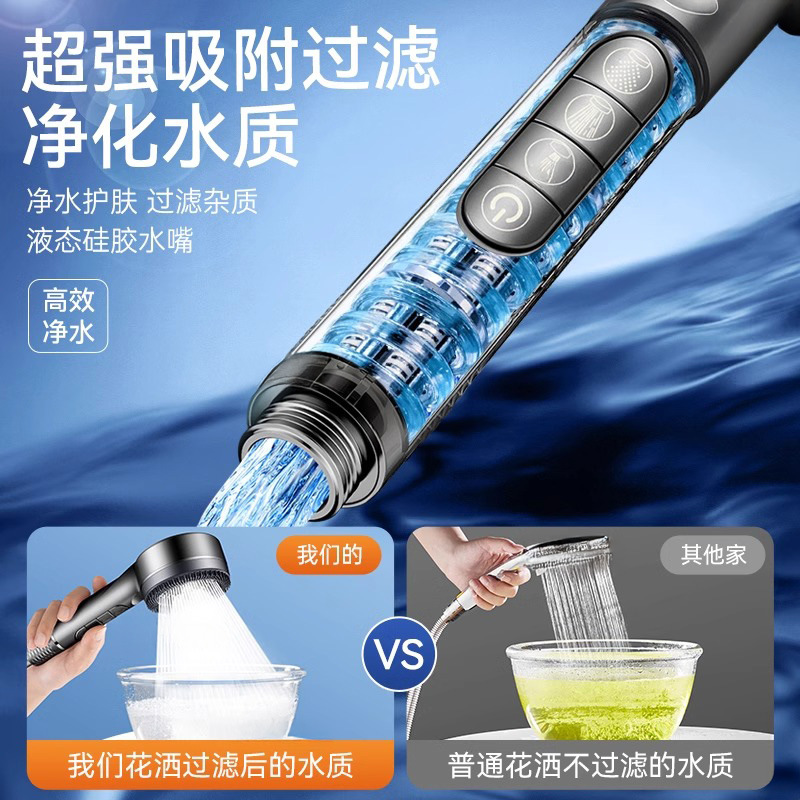 - 雅黑色正品【涡轮增压★过滤净水】升级四档大水花洒