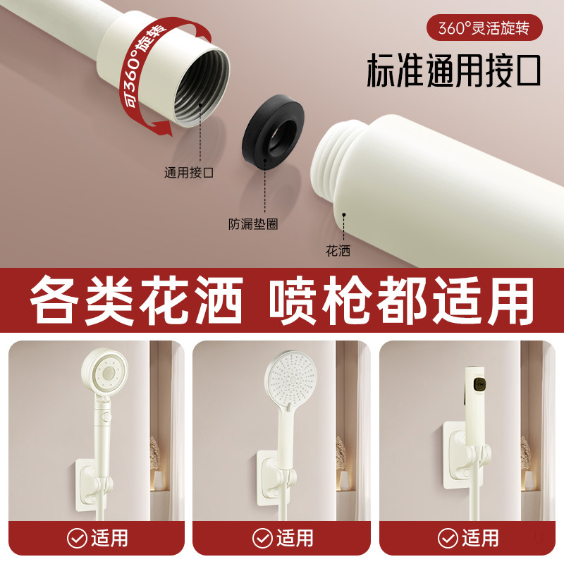 - 【不锈钢白色】1.5米防爆花洒软管#通用接口