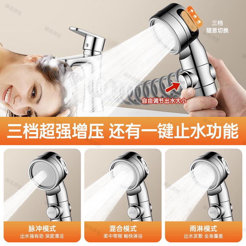 - 止水套装2【迷你花洒+全铜分水器+1.5米防爆软管+免打孔支架】