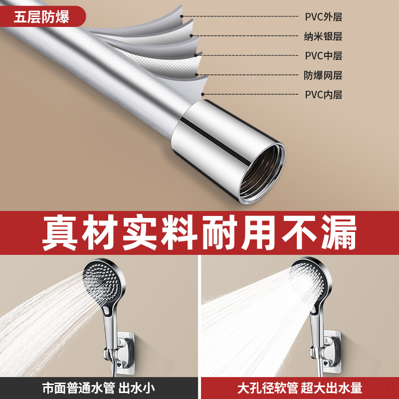 - 【PVC套装3】1.5米加厚防爆软管+5档增压花洒