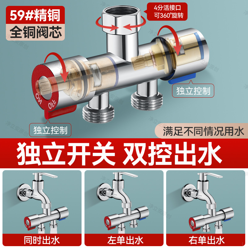 洗衣机水龙头分水器一出二双用自动止水阀一分二接头不锈钢分流器