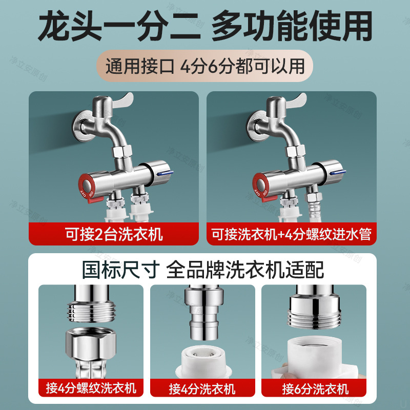 升级款-加厚304止水一分二(4分止水阀+6分洗衣机)