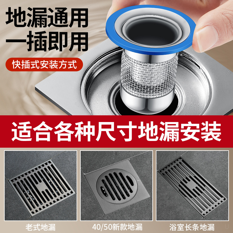 卫生间地漏毛发过滤网通用浴室下水道口304不锈钢防头发防堵神器
