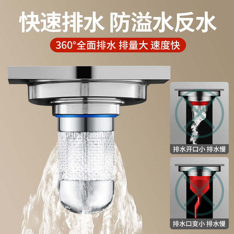 枪灰色不锈钢地漏芯卫生间防臭浴室下水管阳台厕所方形深层防臭