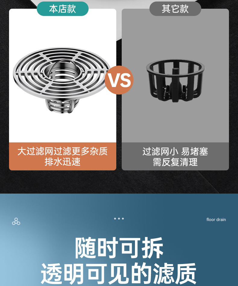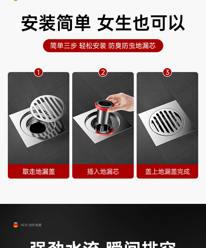 加长银色【全铜磁吸防臭防虫】地漏通用•(不好用免费退)