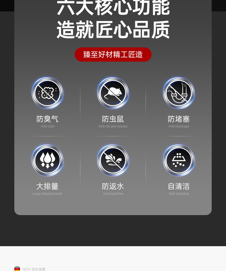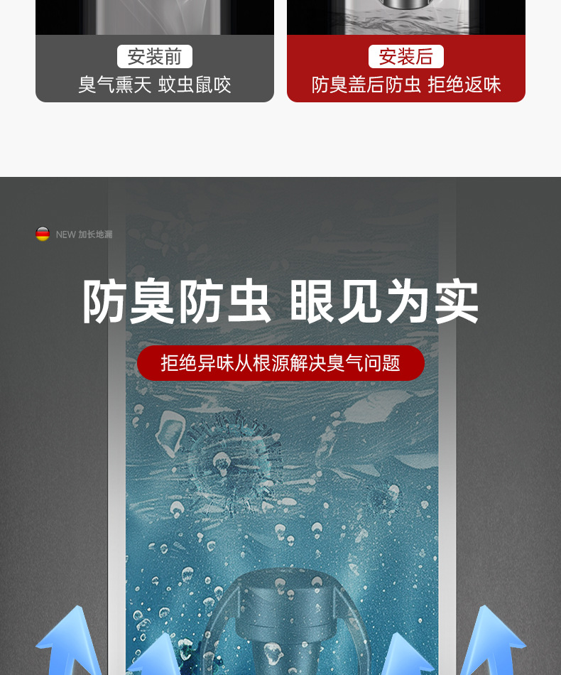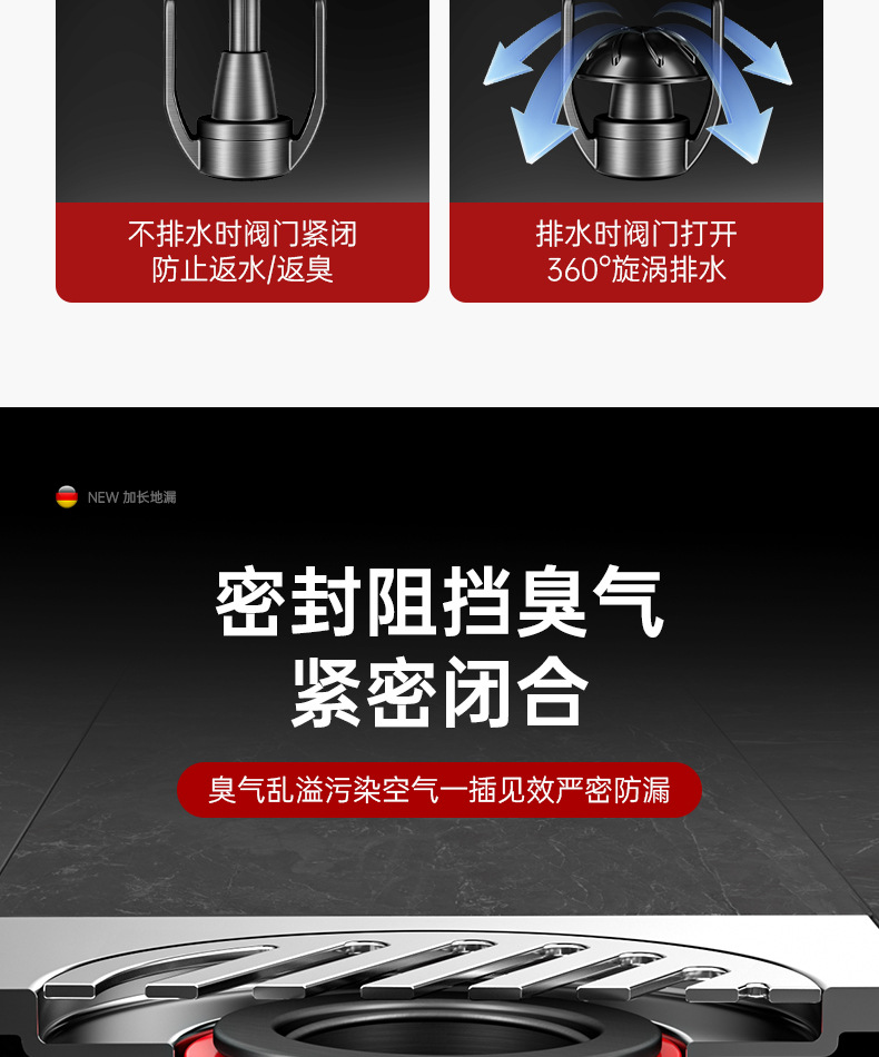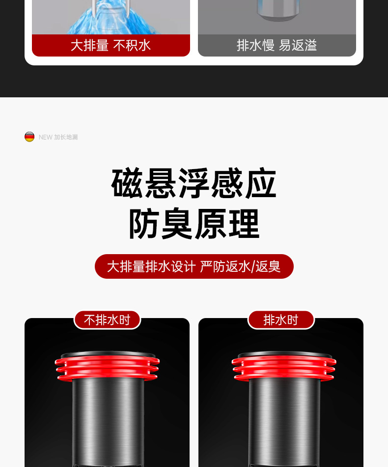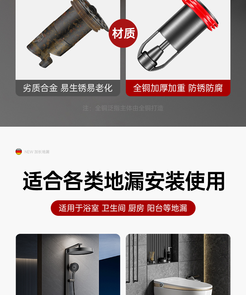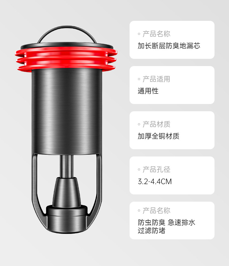 加长枪灰【全铜磁吸防臭防虫】地漏通用•(不好用免费退)