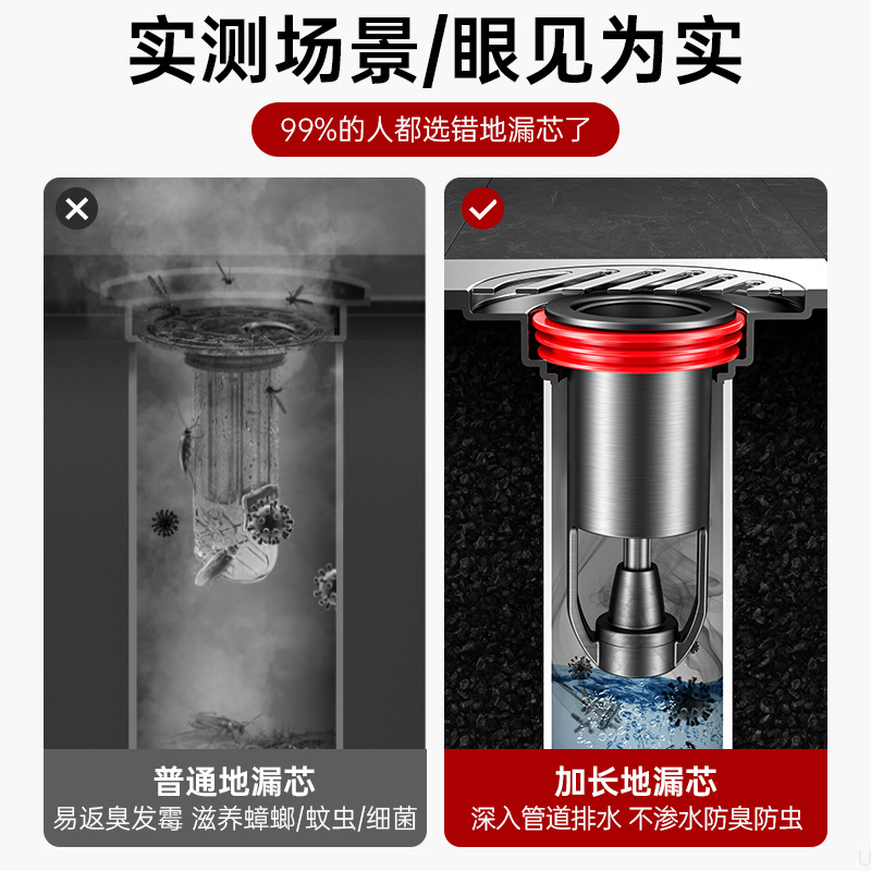 防臭地漏卫生间通用下水道防返臭神器断层加长内芯防小飞虫止逆阀