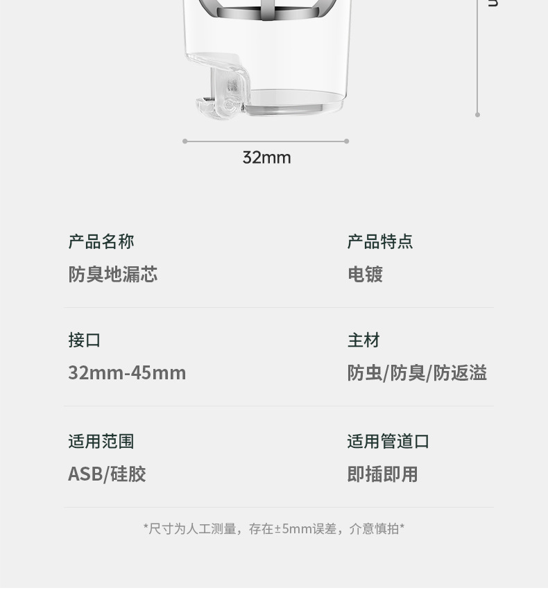 短款银色【全铜磁吸防臭防虫】地漏通用•(不好用免费退)