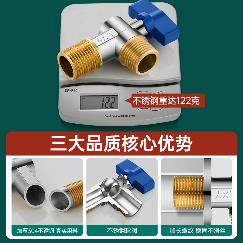 304不锈钢一进二出洗衣机水龙头 阳台卫生间不锈钢水龙头家用4分