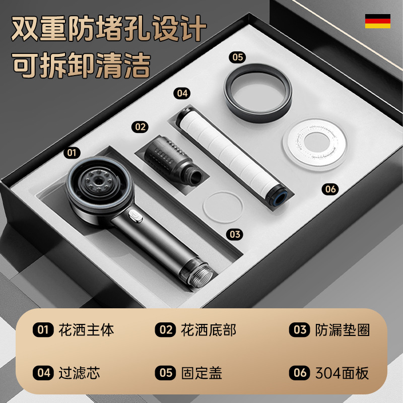 - 增压不刺痛【典雅黑】四档调节-过滤净水(送5滤芯)