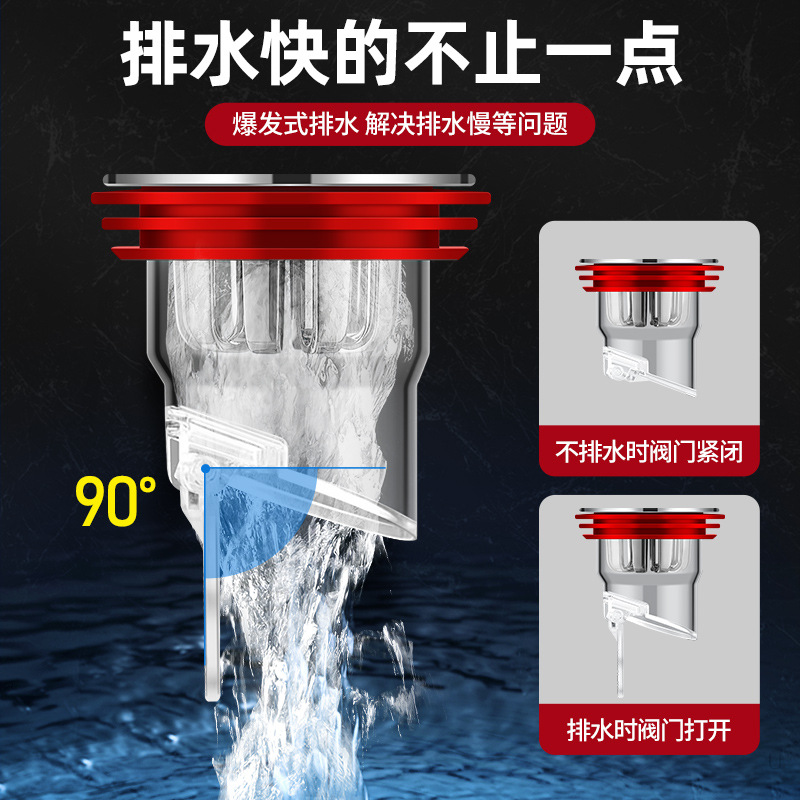马桶不锈钢地漏卫生间防虫防堵浴室阳台厕所方形抗菌芯抗菌防臭