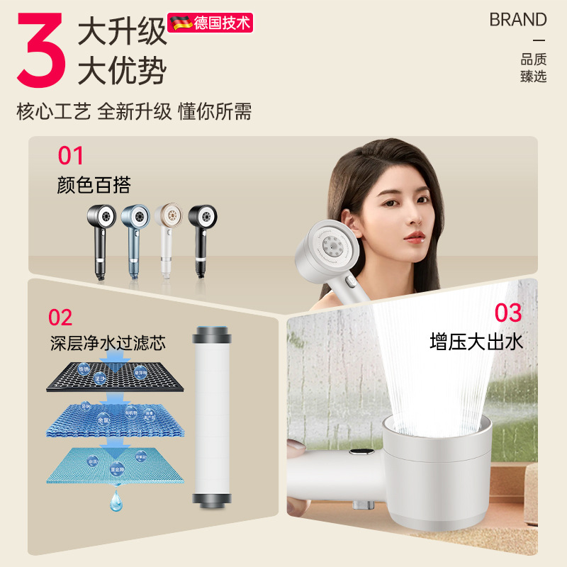 - 增压不刺痛【高贵金】过滤净水-四档调节